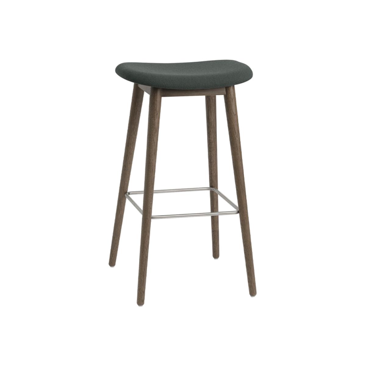 Muuto Fiber counter stool 75 cm Fabric twill weave 990 dark green brown stained oak legs
