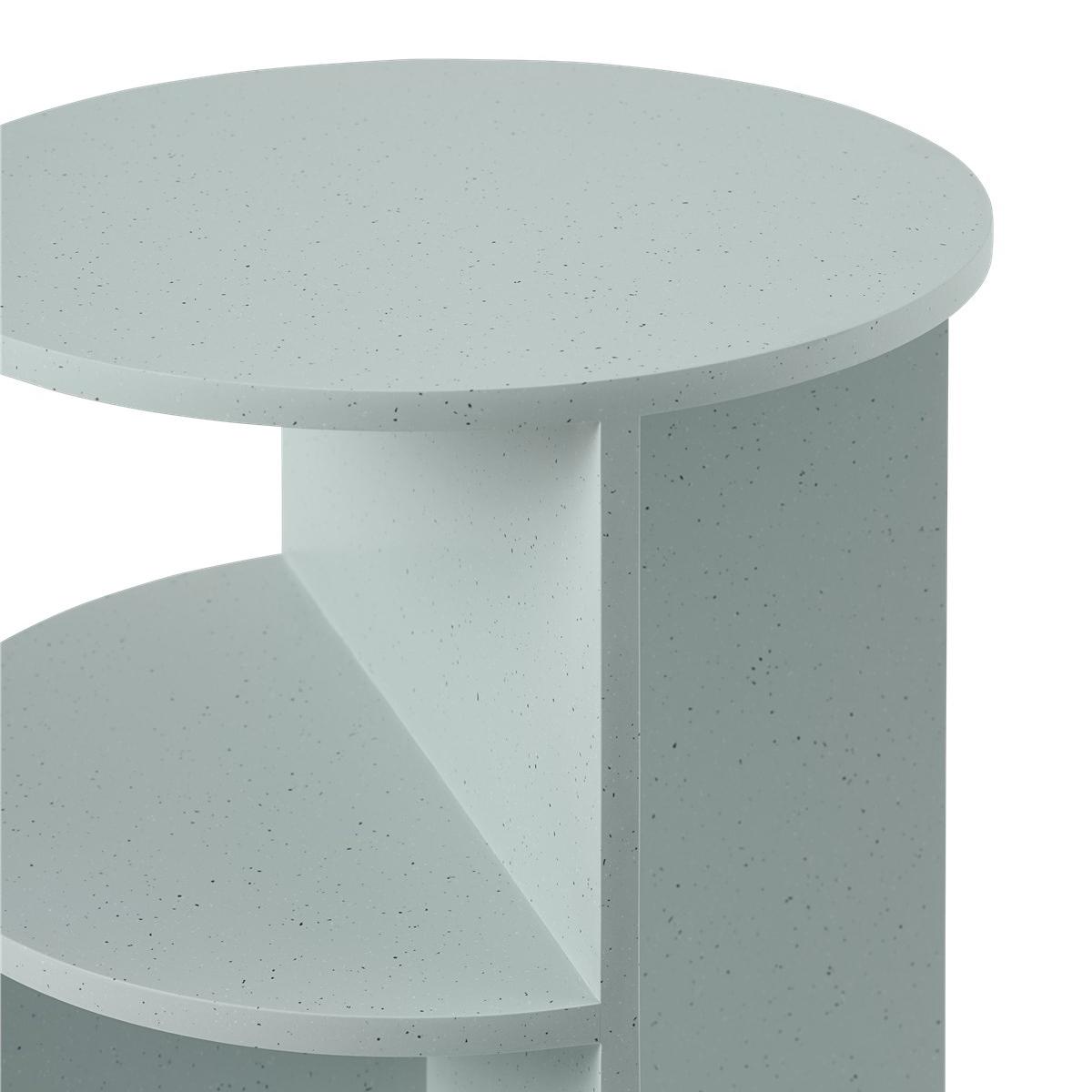 I love the Muuto Halves side table for its sculptural yet functional design, which makes it a versatile addition to various interiors. Its soft sage green hue is particularly effective in creating a calming, understated look and works beautifully in both modern and minimal spaces, as well as in more eclectic settings when styled with contrasting textures or colours. Practical styling tips include using it as a side table next to a sofa or armchair, topped with a small lamp, a stack of books, or a decorative object. Its unique shape also makes it ideal for pairing with other pieces in a layered vignette or for use as a small bedside table - its sculptural form adds interest without overwhelming the space.