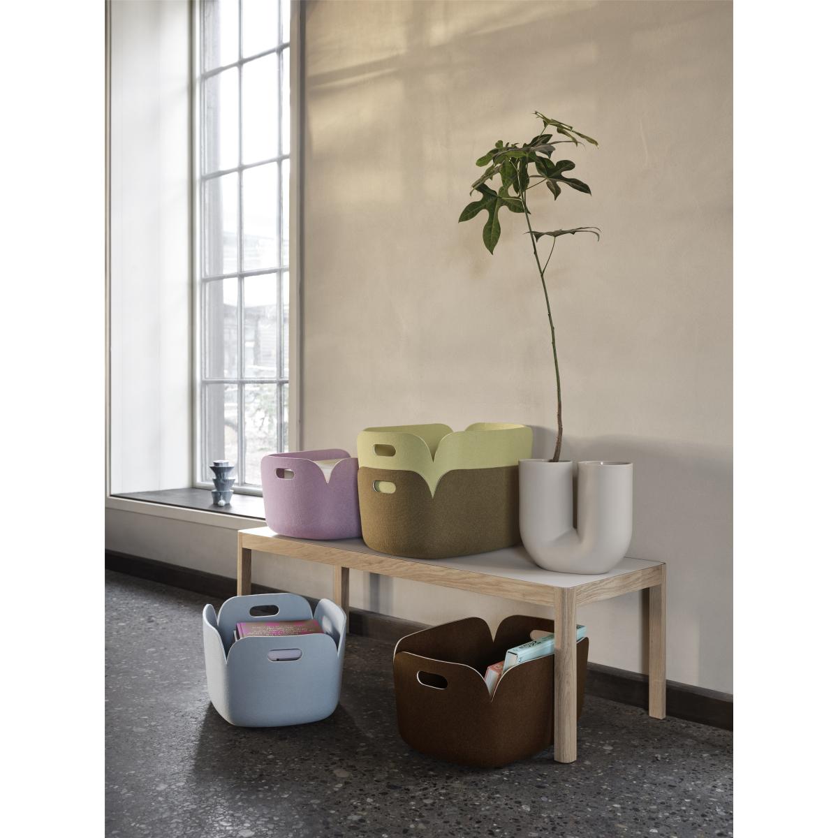 The Restore storage basket from Danish Muuto is designed by Mika Tolvanen and can be used for storing newspapers, toys, blankets or other personal belongings. It is made out of recycled PET bottles and its felted texture gives it a special expression. Combine with other furniture and accessories from Muuto for a Scandinavian look!.
