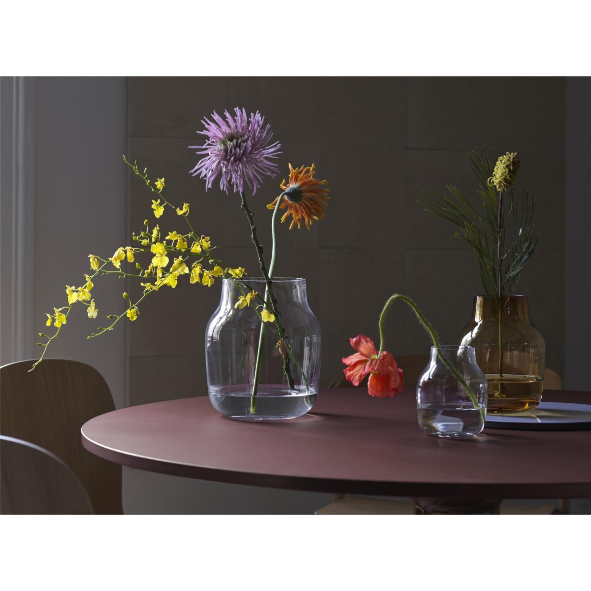 I love this little vase because of its simple, sculptural form and warm burnt orange tone, which adds a subtle pop of colour without overpowering a space. It’s versatile enough to work well in both contemporary and Scandinavian-inspired interiors, especially when paired with natural textures and muted palettes. For styling, I suggest placing it on a shelf or dining table with a small bouquet of dried or fresh seasonal flowers to keep it feeling fresh and approachable. Alternatively, it can be used as a standalone accent piece, particularly in minimalist or neutral settings, where its colour can really stand out. Its size makes it ideal for small flowers or single stems, creating a clean, understated arrangement that benefits from its bold hue.