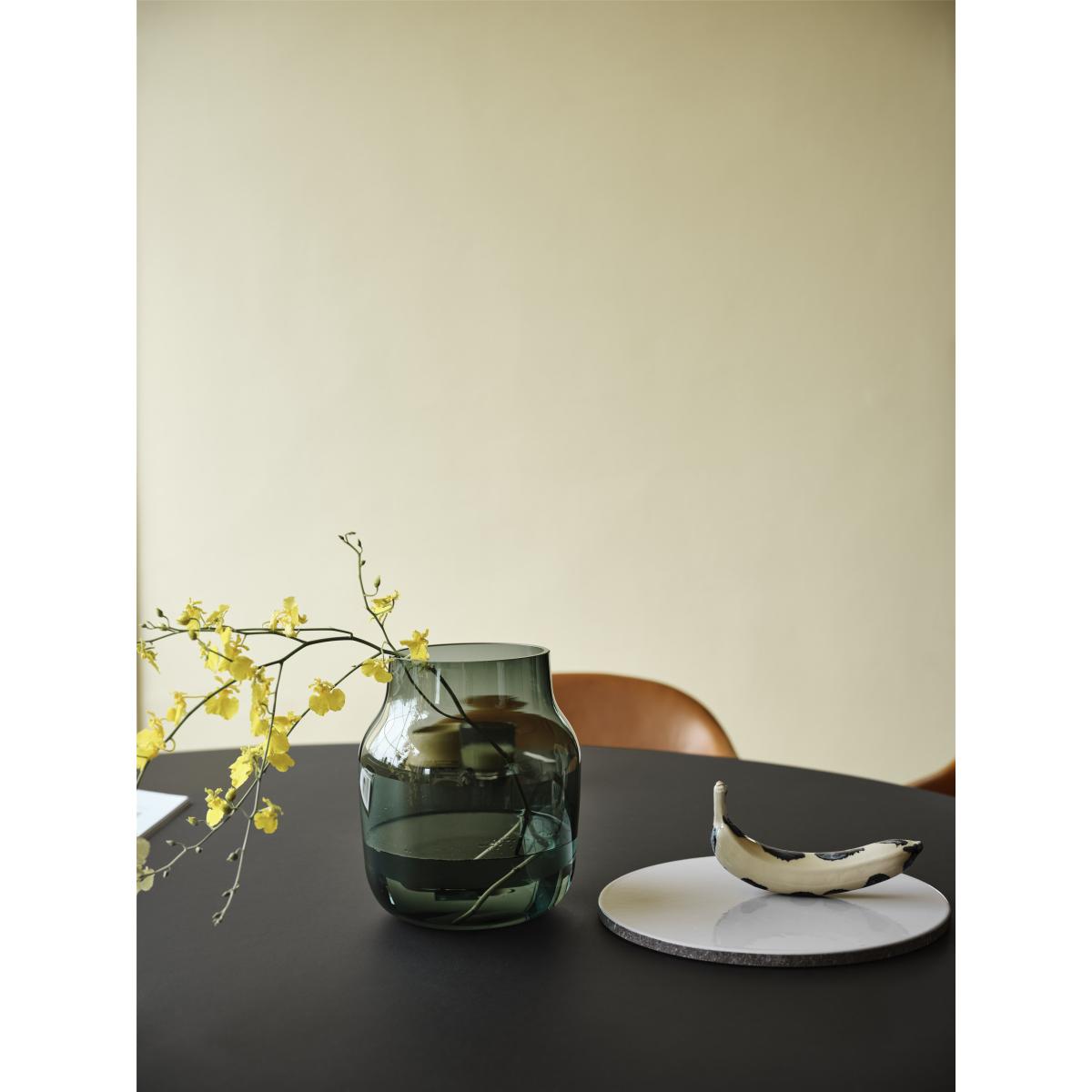 I love this vase for its sleek, understated design and versatile dark green hue-it's a real staple that can elevate a variety of interiors. It works particularly well in minimalist or Scandinavian spaces, where its simple form and muted colour add subtle sophistication. For styling, I’d suggest pairing it with fresh or dried botanicals in neutral tones to highlight its colour, or letting its bold shape stand solo on a sideboard or coffee table for a modern punch. Its size makes it perfect for short-stemmed arrangements or as a standalone sculptural piece. Practical tip: because of its clean lines and smooth surface, it’s easy to wipe clean and keep looking fresh, making it both stylish and functional in everyday spaces.