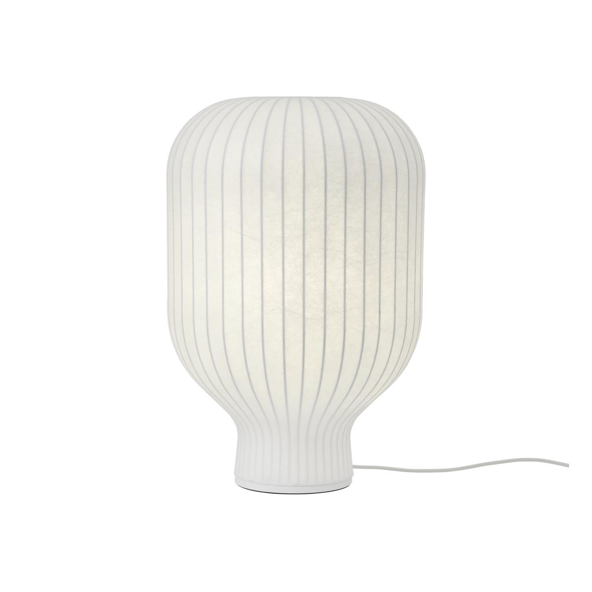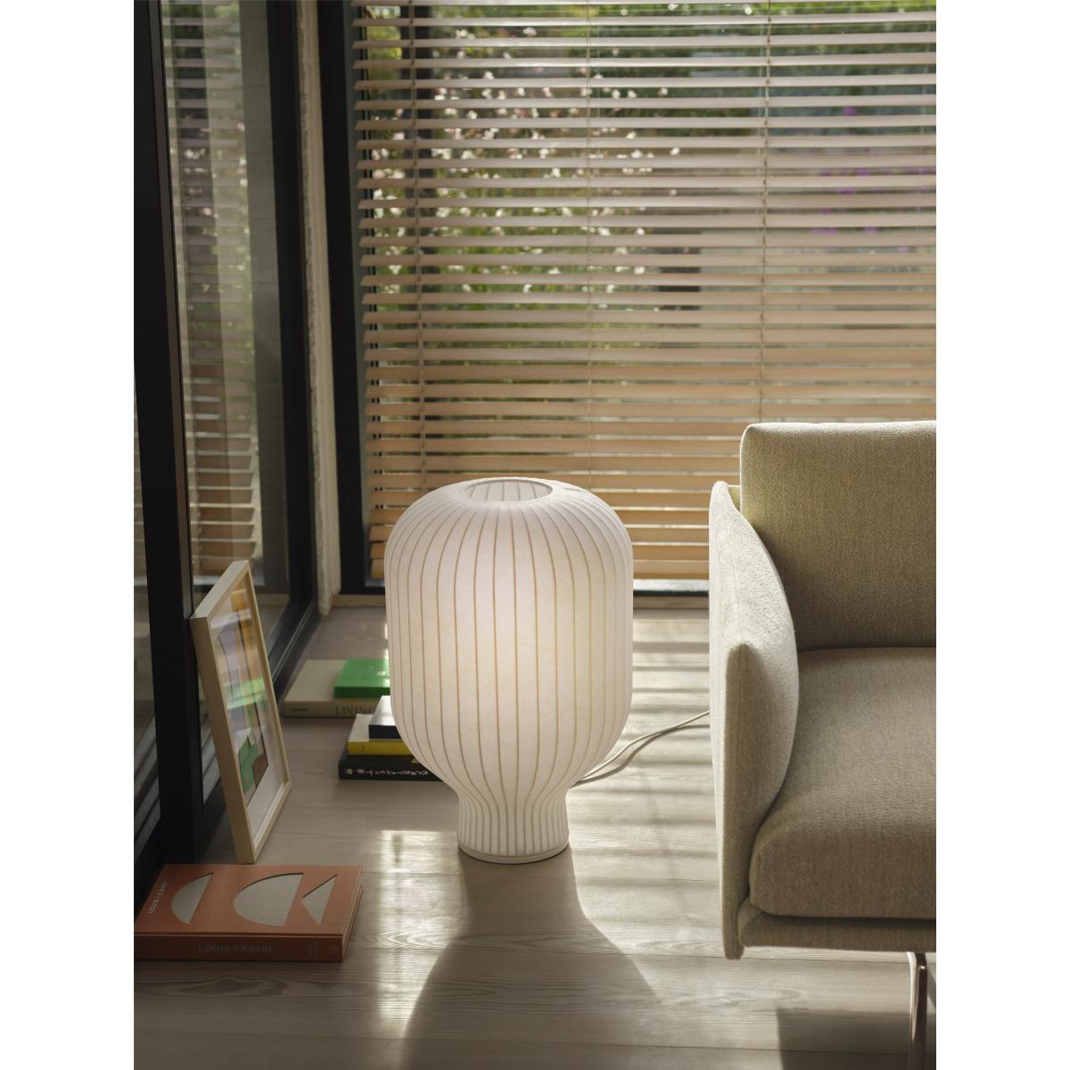 Strand table lamp 59 cm by Muuto is made of a finely textured sprayed cocoon material that creates a soft and sculptural form. The hidden light source spreads a pleasant glow through the enveloping surface, giving the room a harmonious feel. The lamp's balanced expression makes it equally suitable on a desk, a shelf, or a side table, where it adds both functionality and a stylish atmosphere.