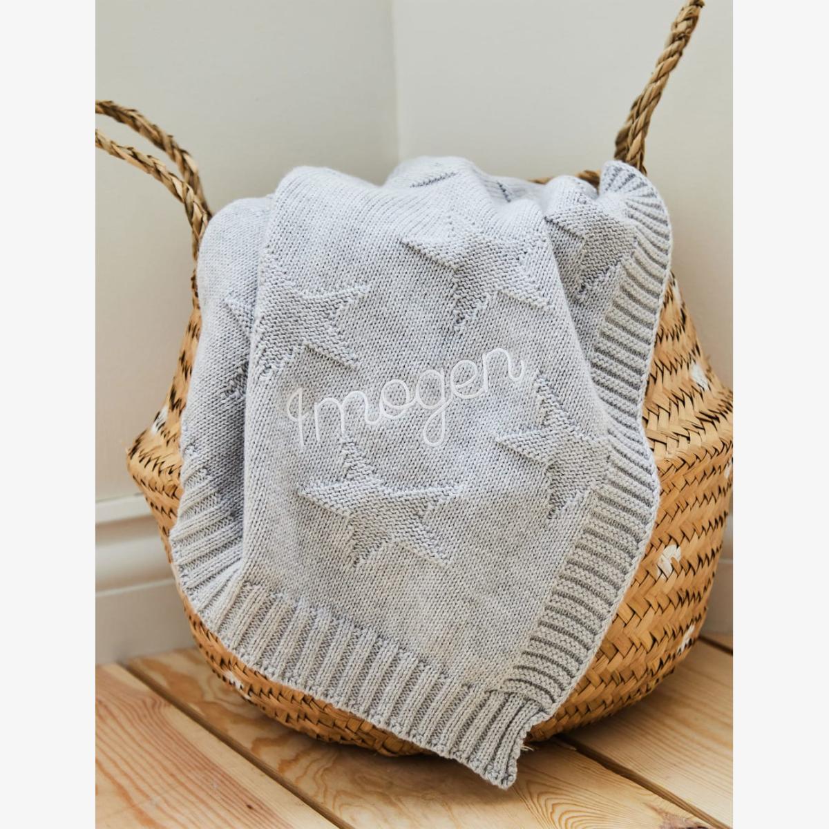 My 1St Years Personalised Star Jaquard Throw - Grey Marl, Blue,Ivory,Grey Marl,Pink