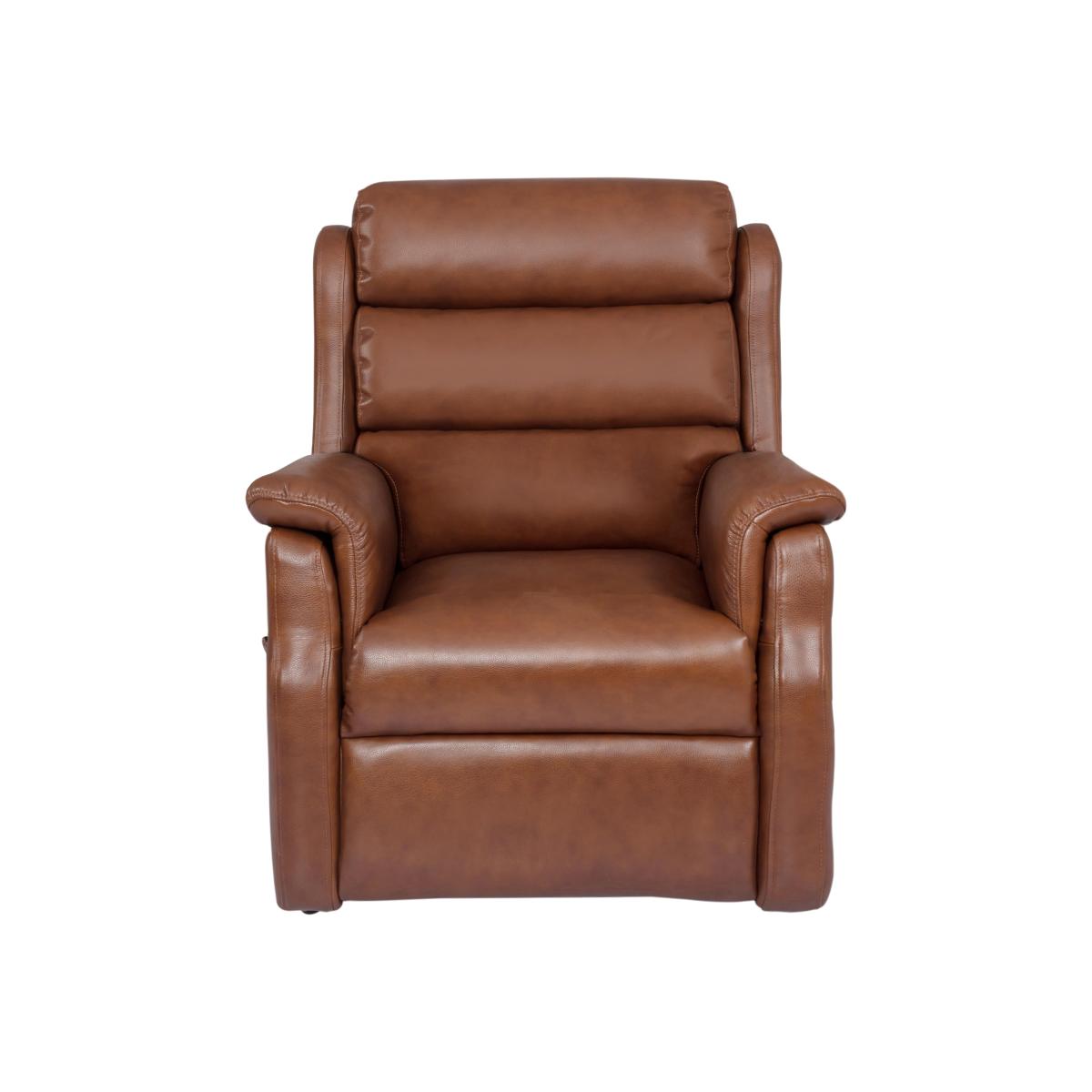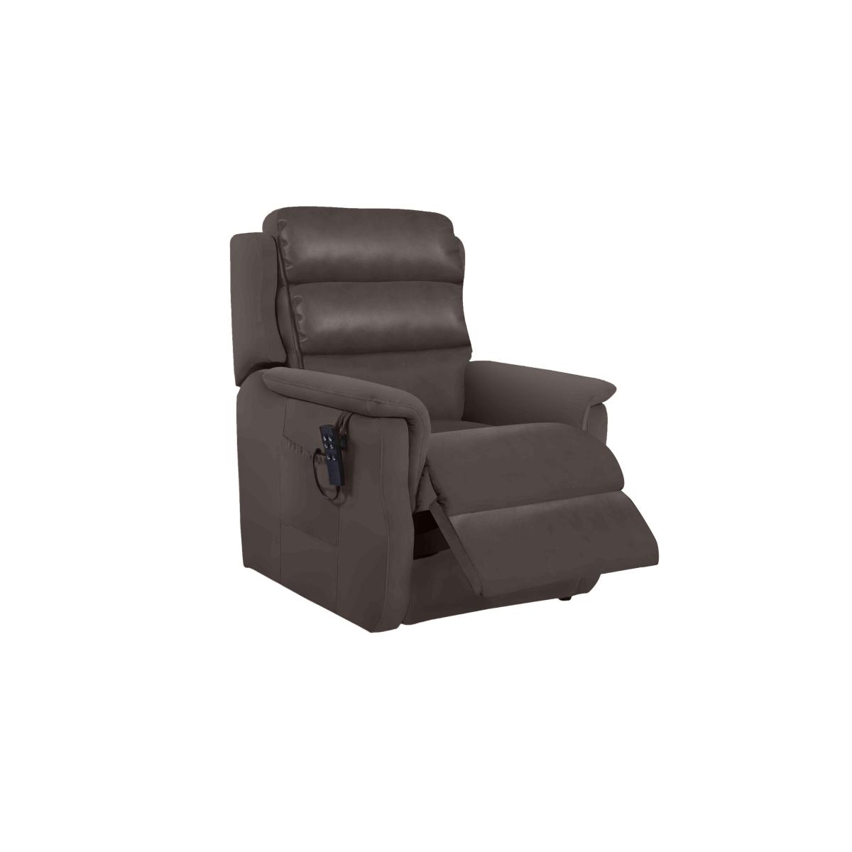 Bring home this stylish leather reclining lift and rise chair and enjoy luxurious comfort as well as an easier, fuss-free way to sit down and stand up. Why you'll love it. This leather lift and rise chair makes the functional quite fabulous. Power mechanism with remote control helps you sit, recline and stand. Backrest and footrest can be adjusted independently for the perfect reclining position. Pocket sprung seat is wonderfully comfortable. With an integrated headrest, extra lumbar support and padded arms. 100% real leather upholstery in a wide choice of colours. The back is removable for easier access to your home. Handmade for Furniture Village. This leather lift and rise chair is part of the My Chair range. What you need to know. Medium comfort level. Seat suspension: spring. Seat cushioning: pocket spring. Seat cushion is fixed. Back suspension: webbing. Back cushioning: fibre. Back cushion is fixed. Feet are removable. Please allow time for the recliner mechanism to ease. Minor gaps are necessary to ensure ease of motion and may be exaggerated depending on floor type. Leather has unique marks and characteristics with variance in colour and texture. Leather softens with use. Smoothing the tops of leather cushions prevents signs of visual comfort. Fixed seat and back cushions require smoothing and straightening regularly. To smooth and straighten fixed cushions, punch the back cushion’s top two corners and the seat cushion’s outer two corners, and pinch outwards. Please read our upholstery care guide for more advice.