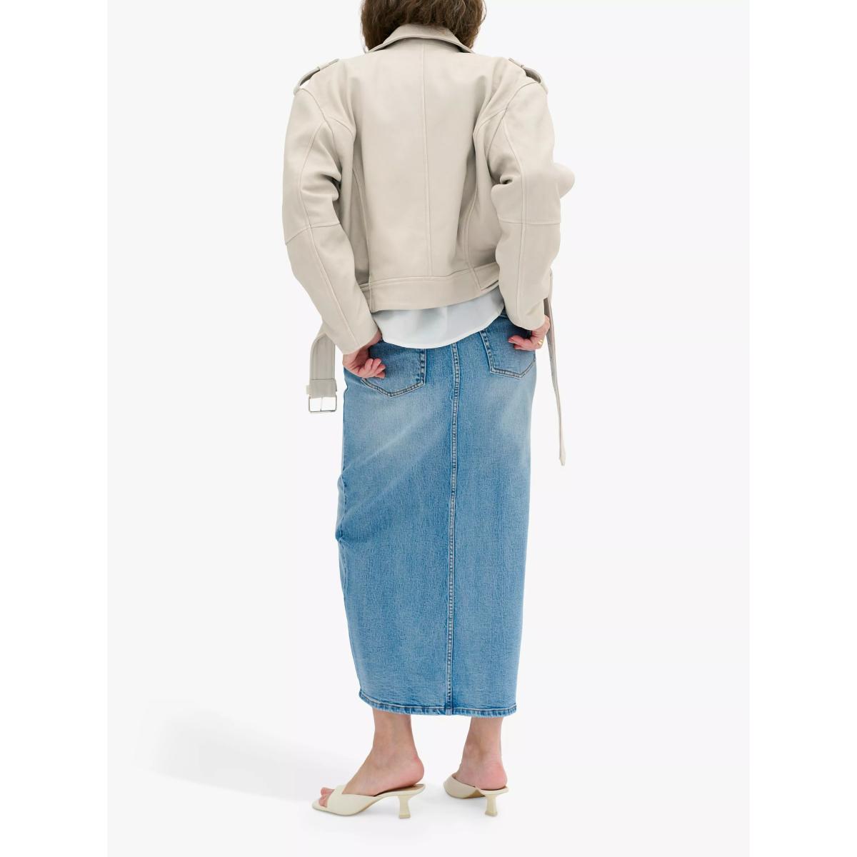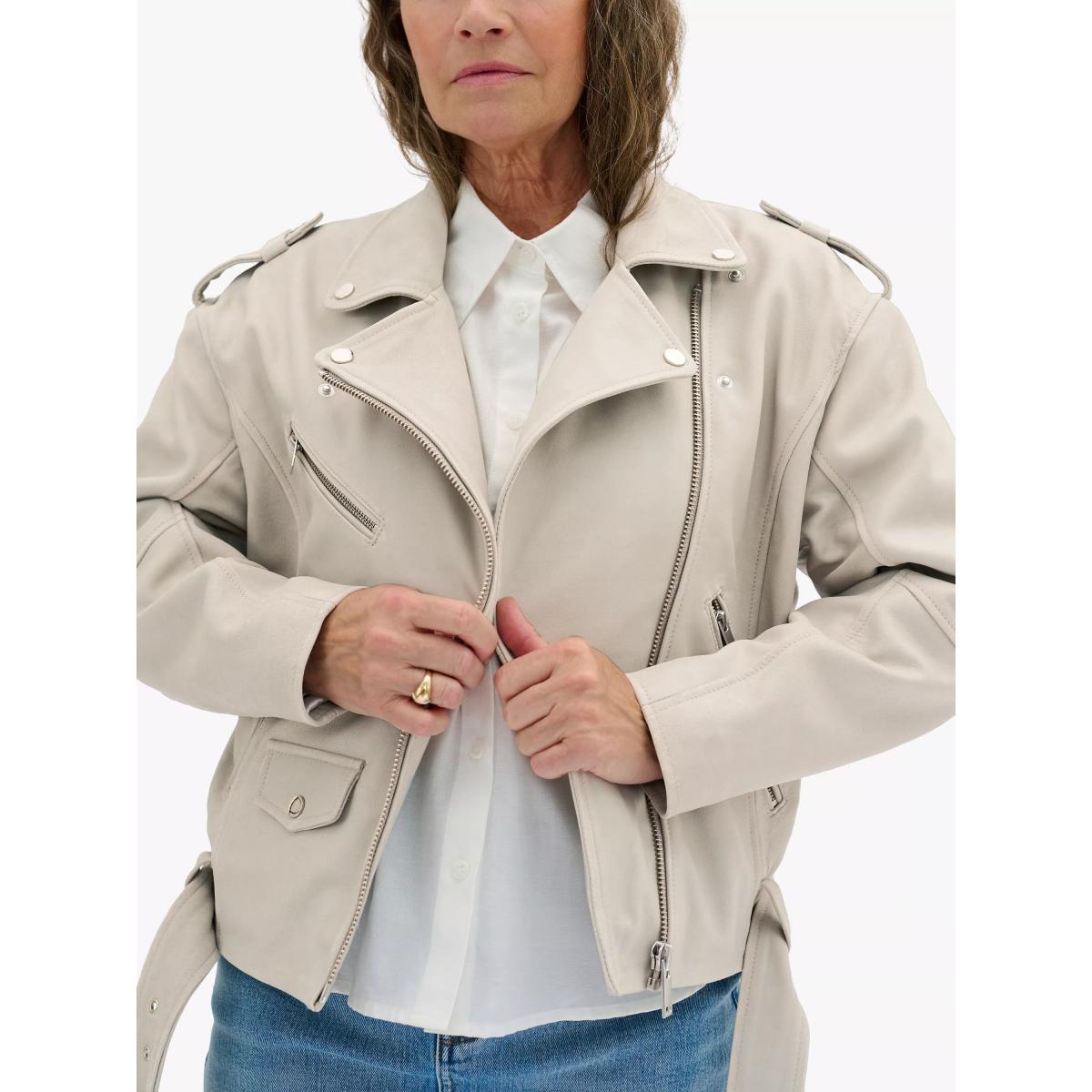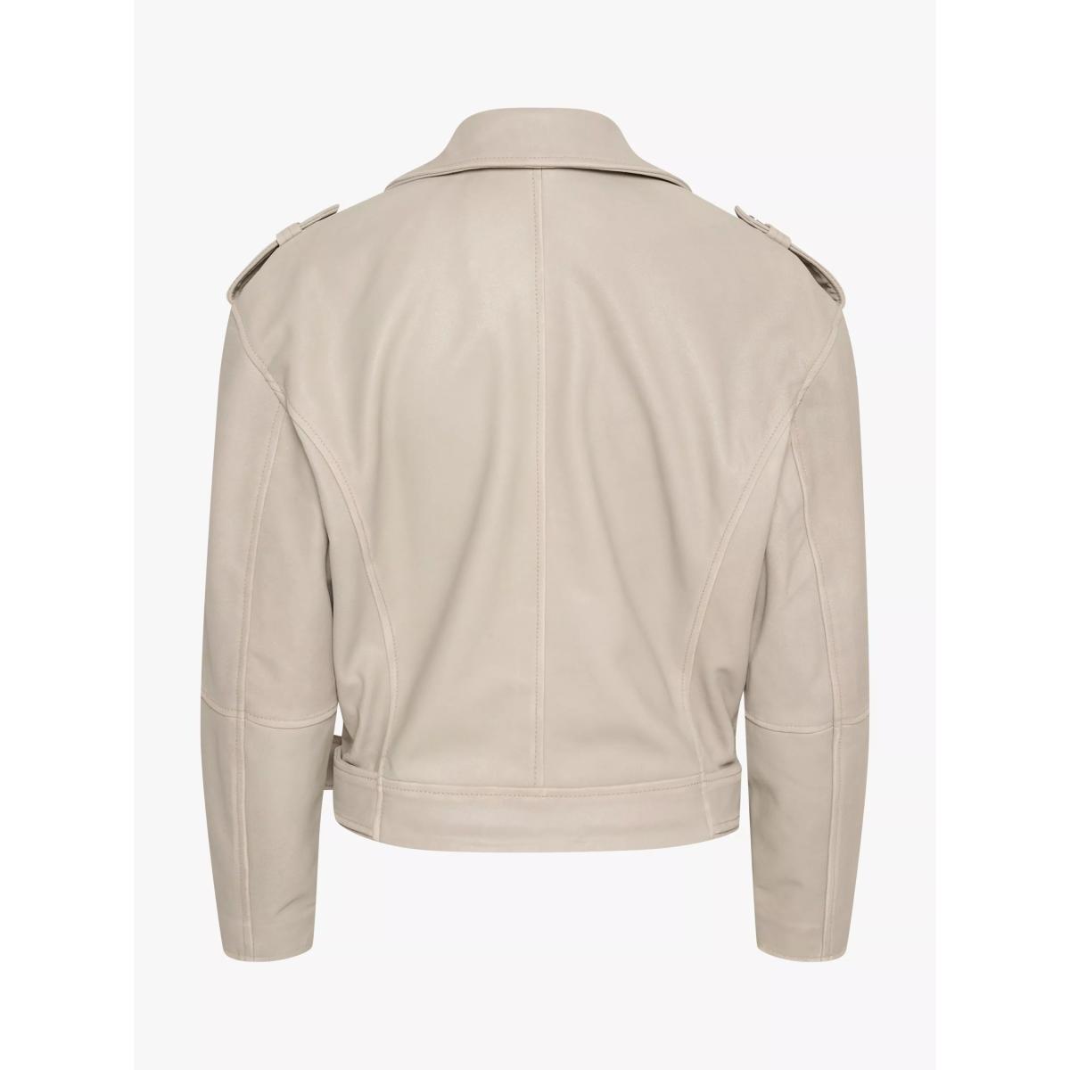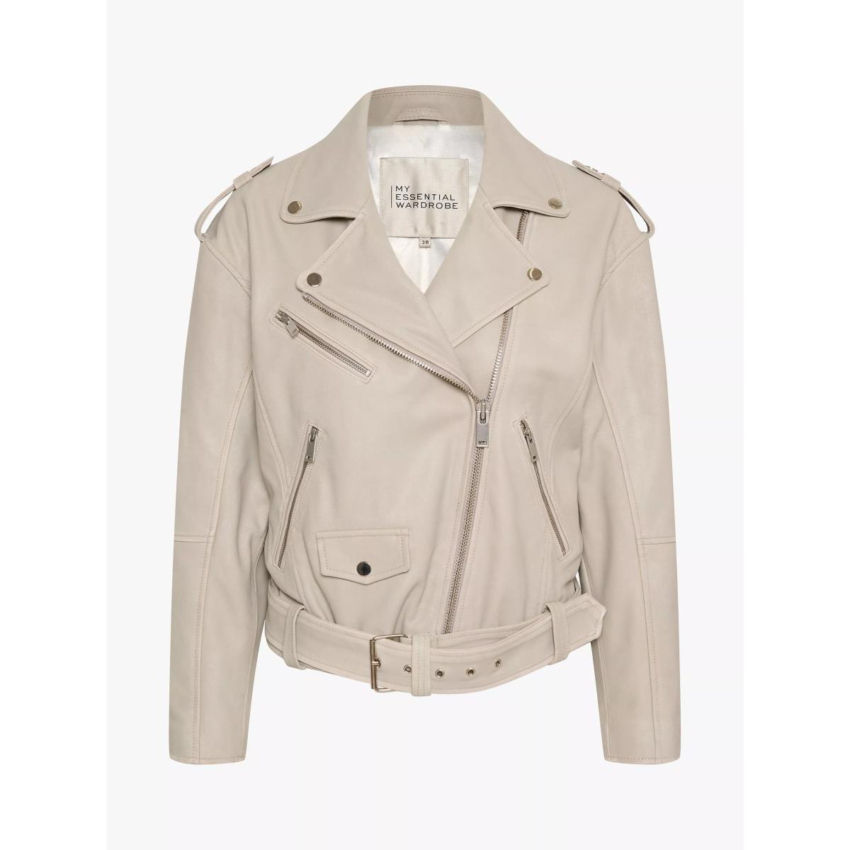 MY ESSENTIAL WARDROBE Gilo Boxy Fit Leather Biker Jacket, White Retro Wash