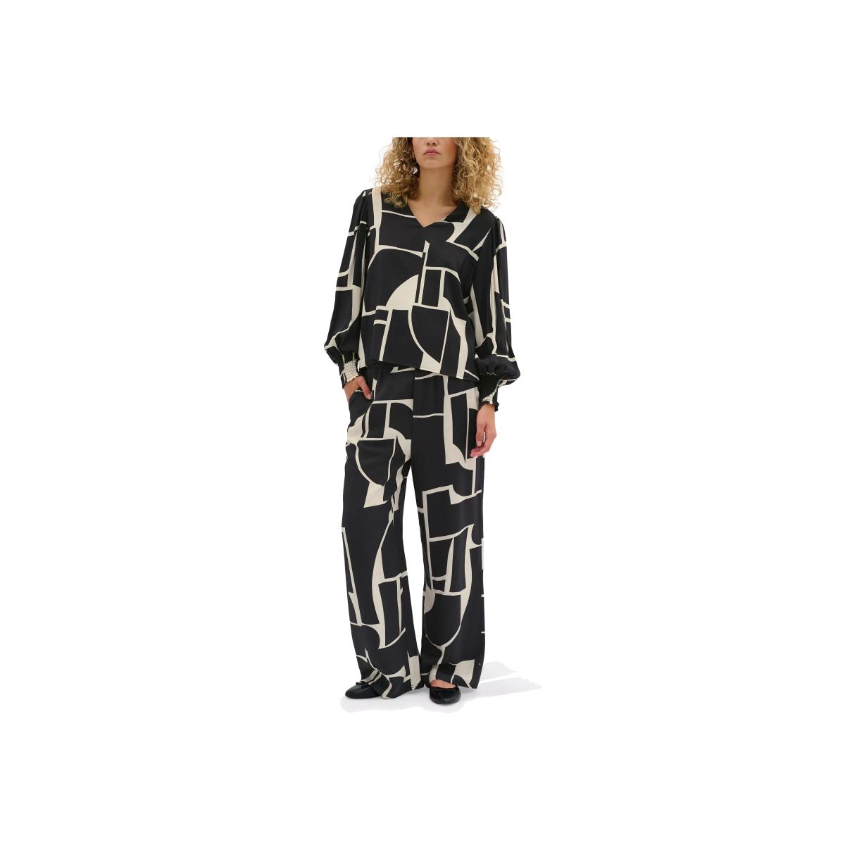 MY ESSENTIAL WARDROBE Kelly Graphic Print Wide Leg Trousers, Black/Ecru
