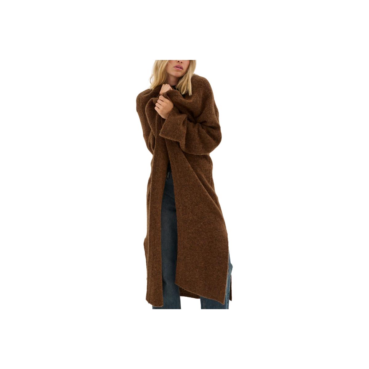 MY ESSENTIAL WARDROBE Rianna Long Wool Blend Cardigan, Foxy Brown Melange