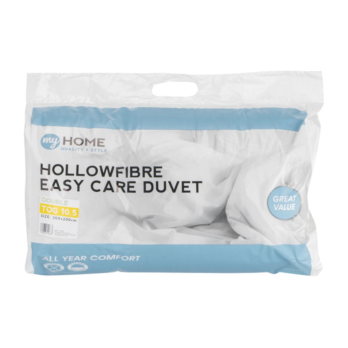 This great My Home 10.5 Tog Duvet has a well-balanced construction and polyester hollow fibre filling that provides warmth whilst preventing you from overheating. Its 10.5tog thickness makes it ideal for use all year, keeping you cosy and helping you to sleep easy, with the added ease of being machine washable.
