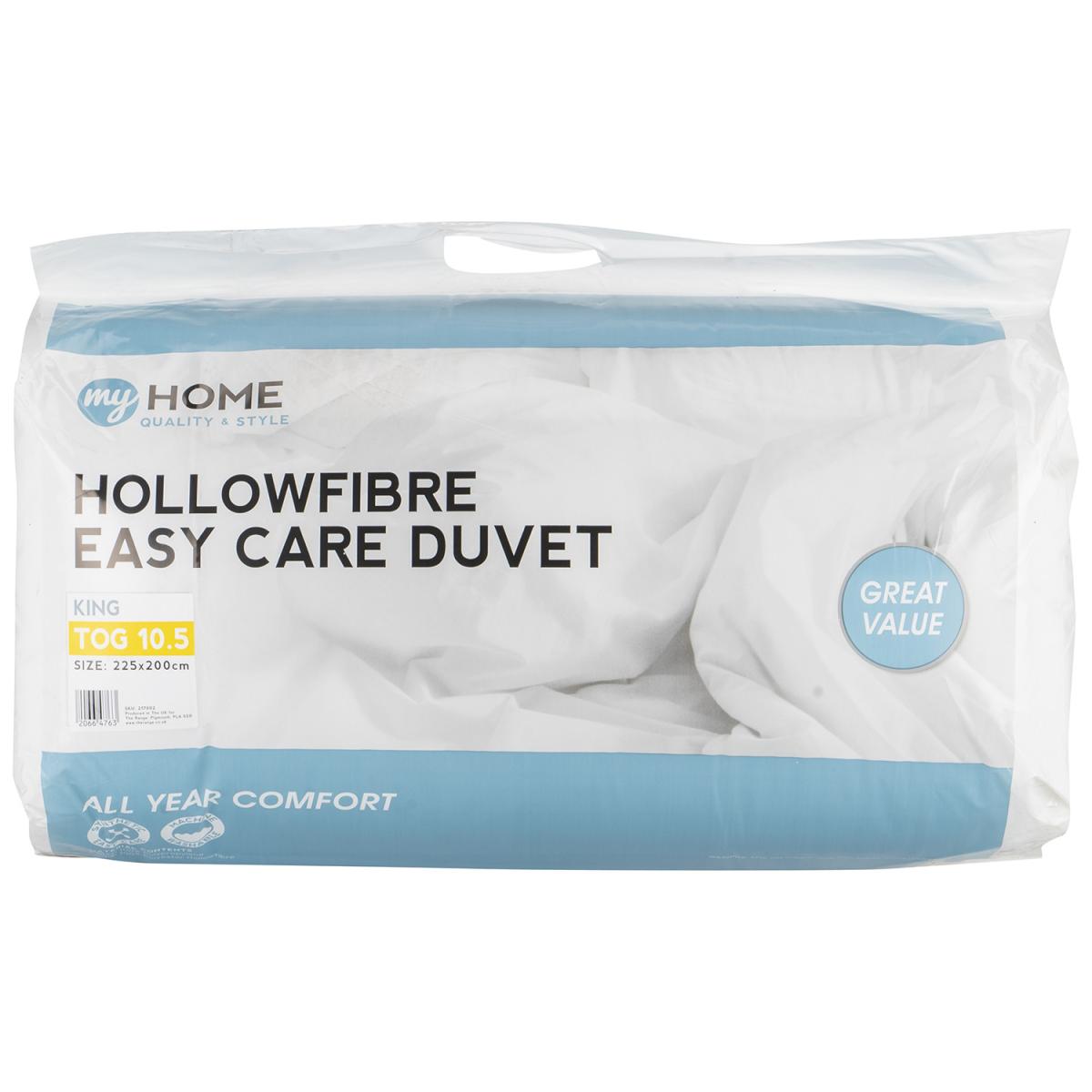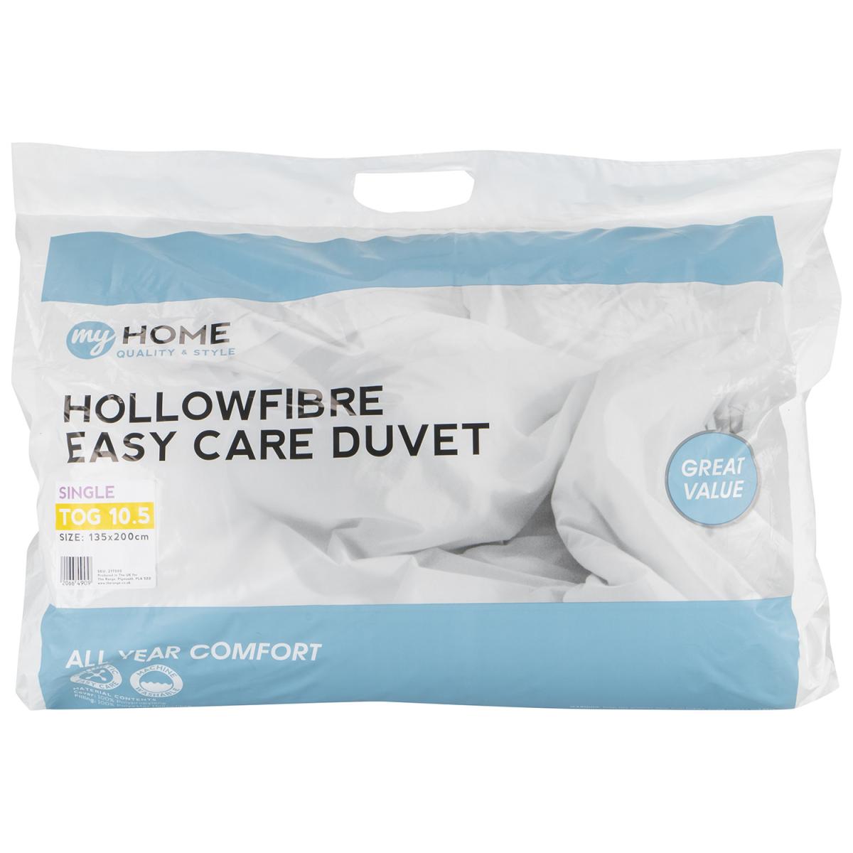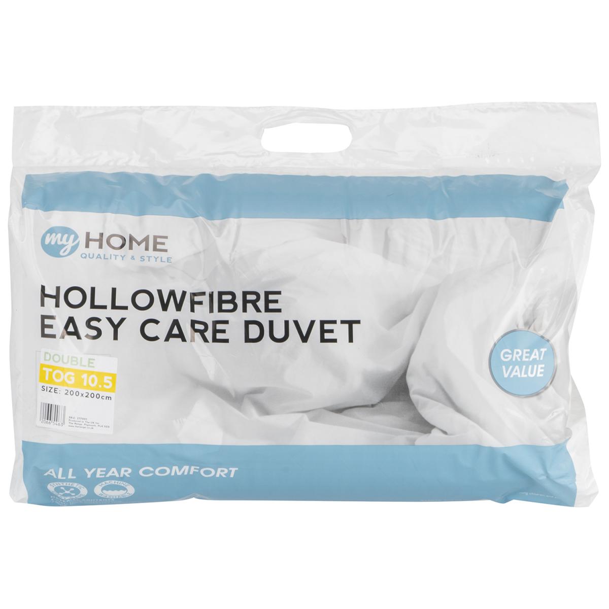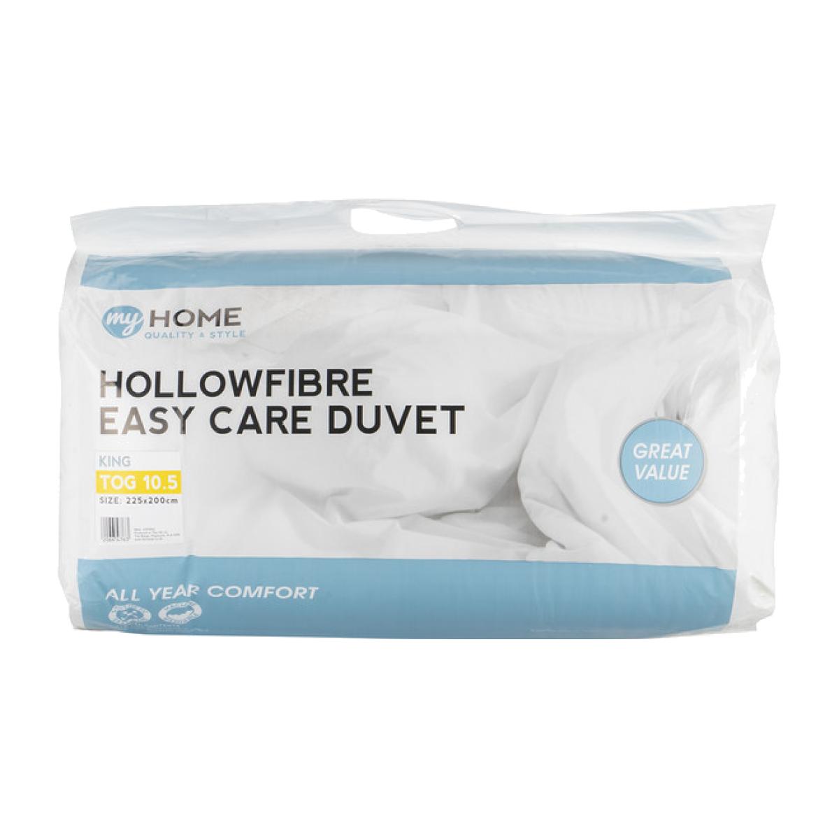 This great My Home 10.5 Tog Duvet has a well-balanced construction and polyester hollow fibre filling that provides warmth whilst preventing you from overheating. Its 10.5tog thickness makes it ideal for use all year, keeping you cosy and helping you to sleep easy, with the added ease of being machine washable.