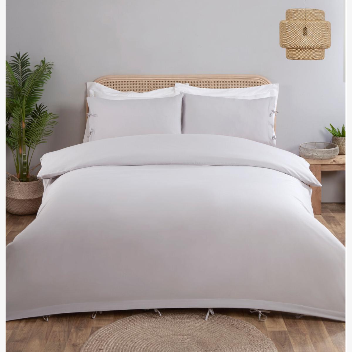 My Home Moda Tied Duvet Cover and Pillowcase Set - Silver / Double