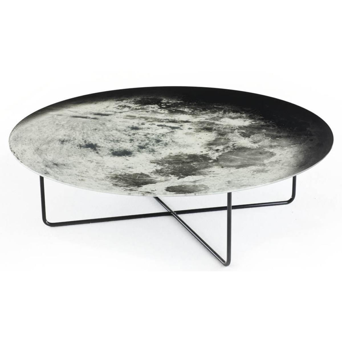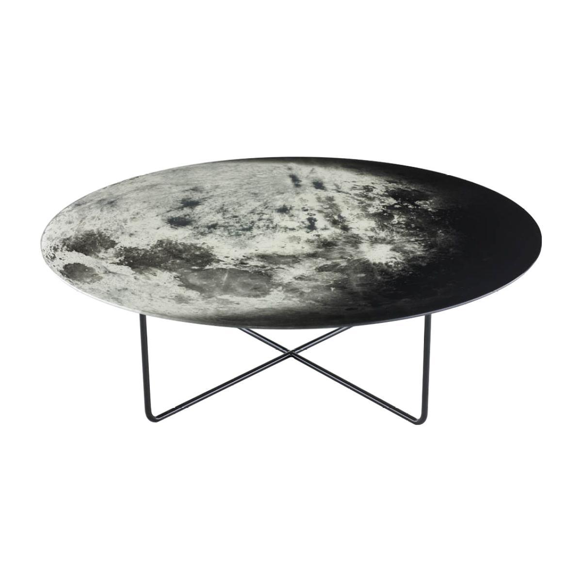 Hanging on the wall or in the centre of the room, My Moon My Mirror is your personal piece of the night sky. The moon printed on the mirrored surface combines function and fantasy. Let yourself go and howl at the moon. Glass mirror with safety film, silvery and printed with photographic print. Top in tempered glass mirror silvery and printed with photographic print. Base in varnished steel glossy black. Hanging on the wall or in the centre of the room, My Moon My Mirror is your personal piece of the night sky. The moon printed on the mirrored surface combines function and fantasy. Let yourself go and howl at the moon. Glass mirror with safety film, silvery and printed with photographic print. Top in tempered glass mirror silvery and printed with photographic print. Base in varnished steel glossy black.