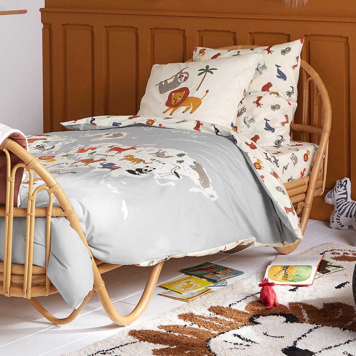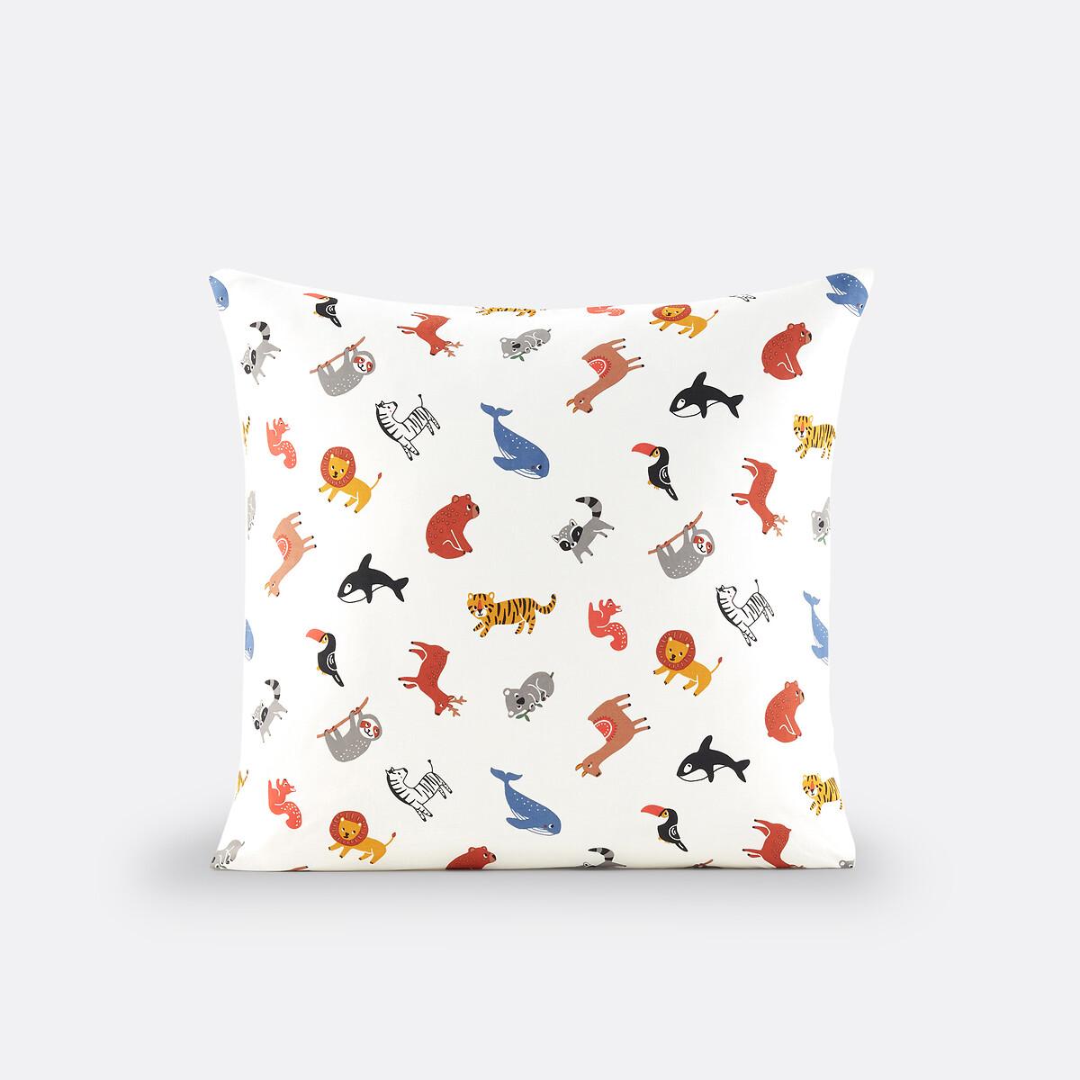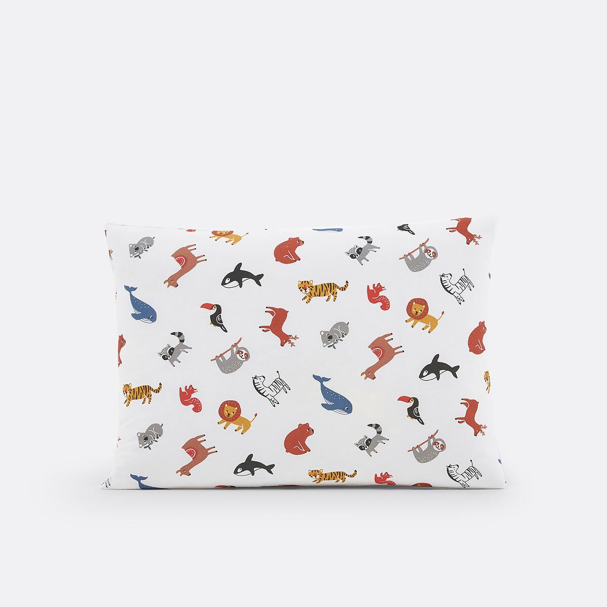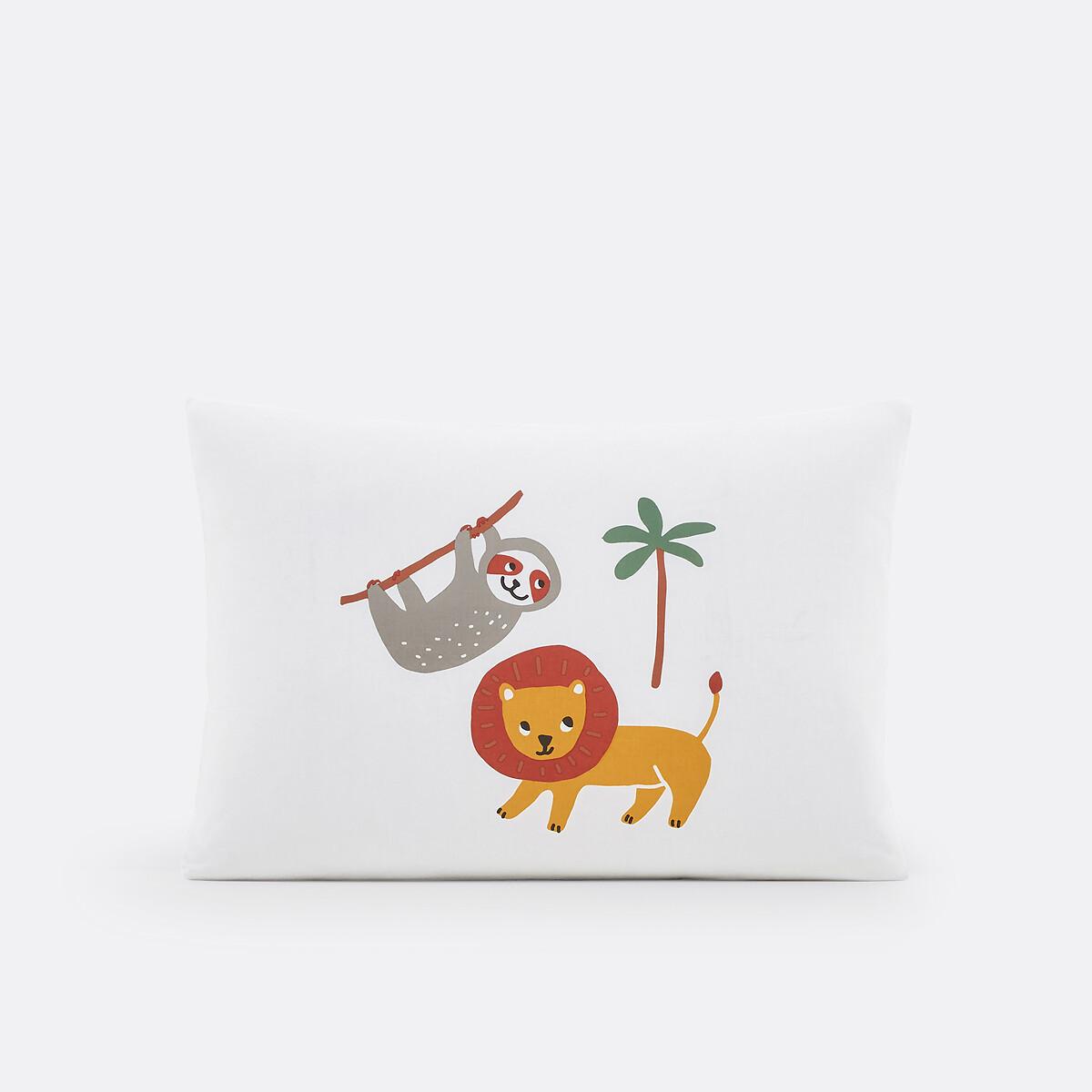 With the My World pillowcase in organic cotton, your child will want to go on an adventure and find out where lions, monkeys, whales... come from. Cotton is part of our daily lives. We love it for its suppleness and softness. Easy Care, it is ideal for the beds of young and old alike!Product Details • 100% cotton • Organic cotton • 144 thread count • Front decorated with animal motifs, back printed small motifs • Sack shape • Organic cotton Care Advice • Machine washable at 60°C • By washing your laundry at 40°C instead of 60°C, you limit energy consumption. Sizes • 63 x 63cm: Square pillowcase • Cotton from organic farming. Organic farming does not use any chemicals, pesticides, insecticides or GMOs. Produced with minimal impact on biodiversity. • OEKO-TEX® Standard 100. Standard 100 certification by OEKO-TEX® tests textile products for harmful substances via an independent, international label.