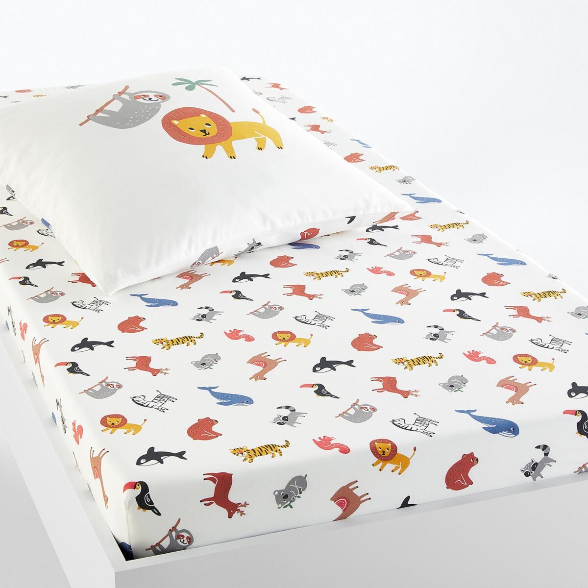 With this My World organic cotton fitted sheet, your child will want to go on an adventure and discover where lions, monkeys and whales come from... Organic cotton is a natural and comfortable material, soft and light. It's longwearing and easy to care for. Product Details. 100% organic cotton. Free from pesticides or chemicals, organic agriculture protects the environment and the health of those who harvest it. 57 threads/cm2. Small printed pattern. Height of flap: 25cm. Care Advice. Machine washable at 60° Dimensions. 90 x 140cm: Adjustable bed. 90 x 190cm: Single Browse the My World collection online at La Redoute. Additional Information. This STANDARD 100 certified product by OEKO-TEX® - certificate no. CQ 1102/4 IFTH - follows a certified and controlled manufacturing process which is respectful of your skin. The STANDARD 100 by OEKO-TEX® is the first label that meets the needs of consumers in terms of human ecology. It guarantees the absence of harmful substances or those potentially presenting a risk to health.