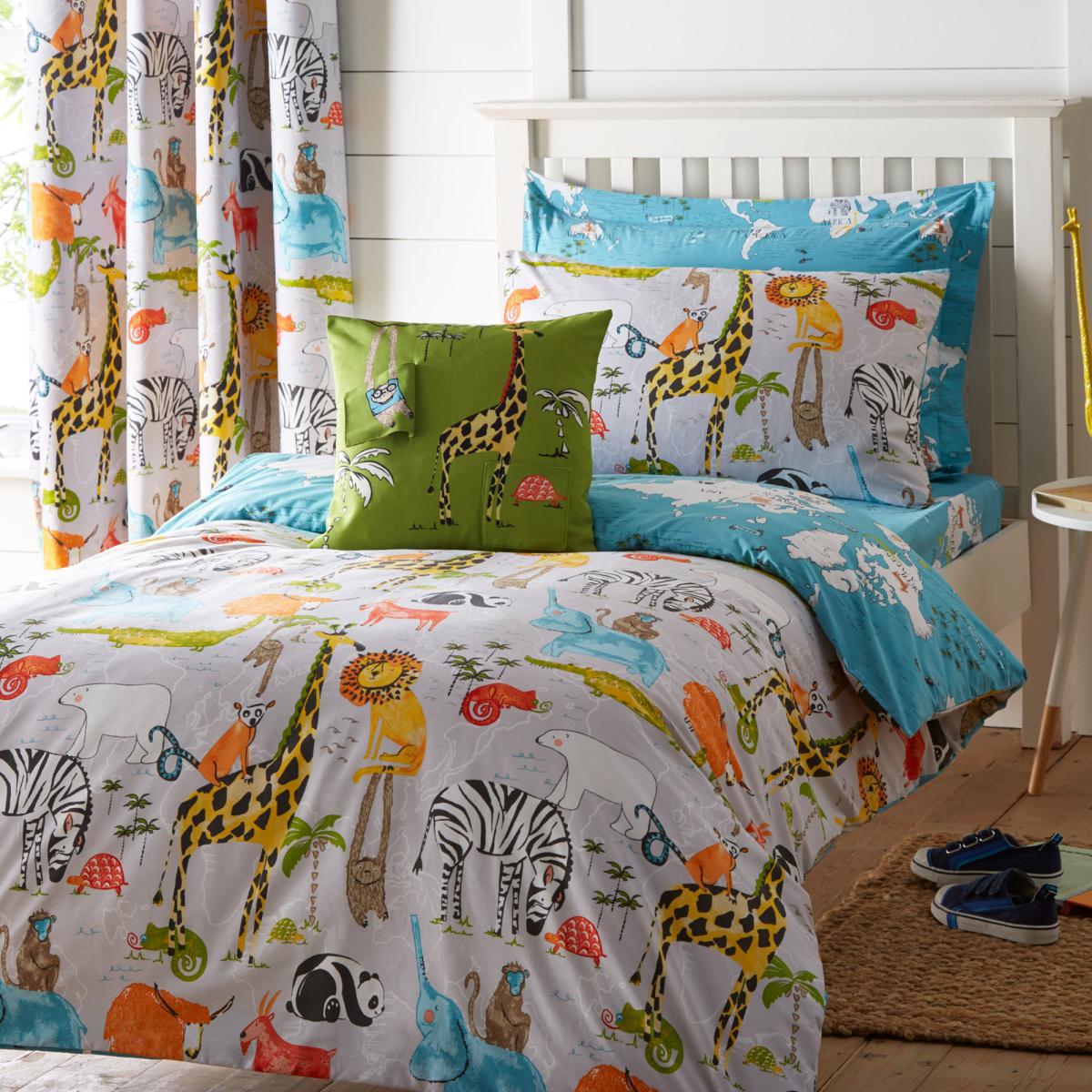 Bring the animal kingdom to your bedroom with the My World duvet cover and pillowcase set. Printed with a fun and bold atlas design on one side and a bright animal pattern on the reverse, this duvet cover set is ideal for any animal lover.