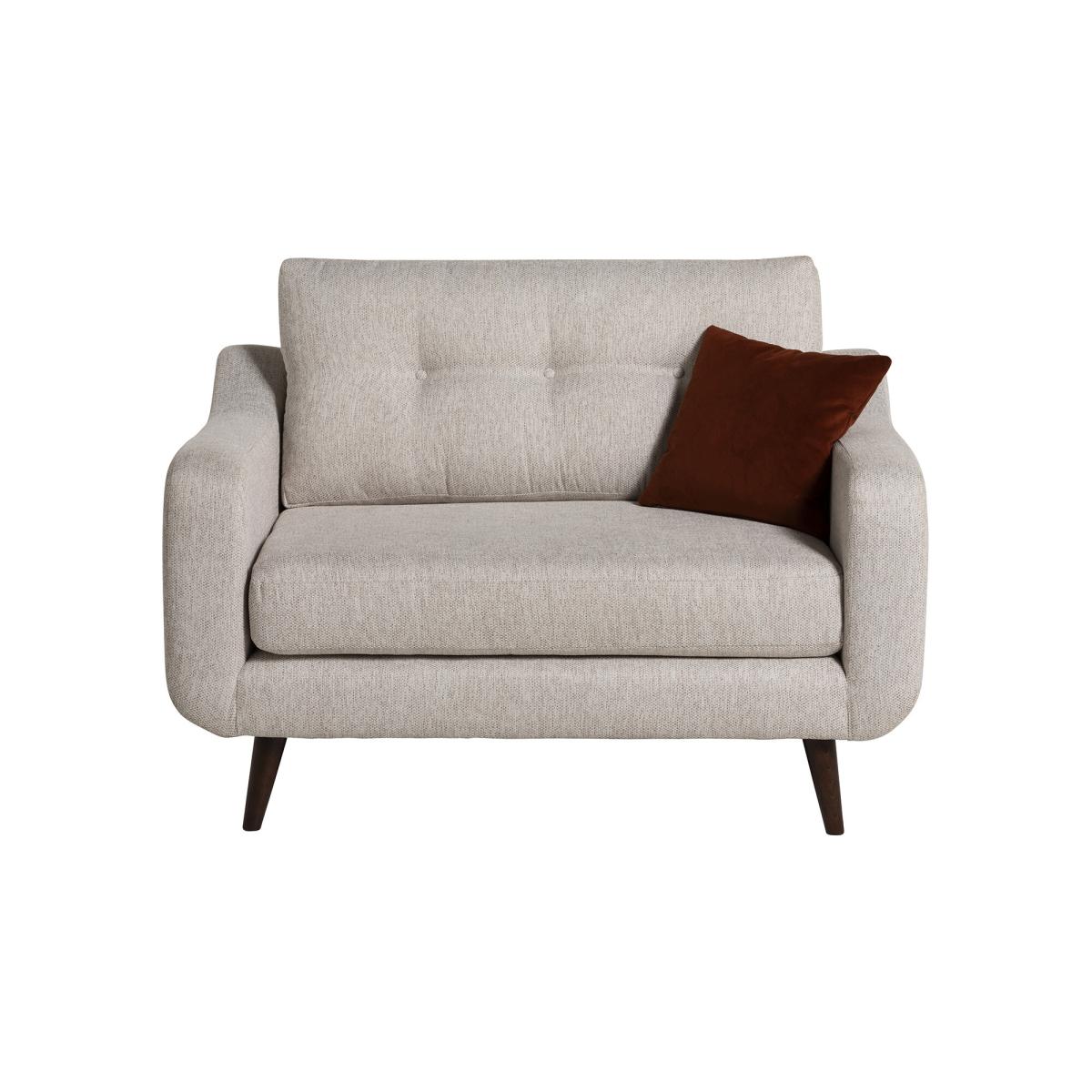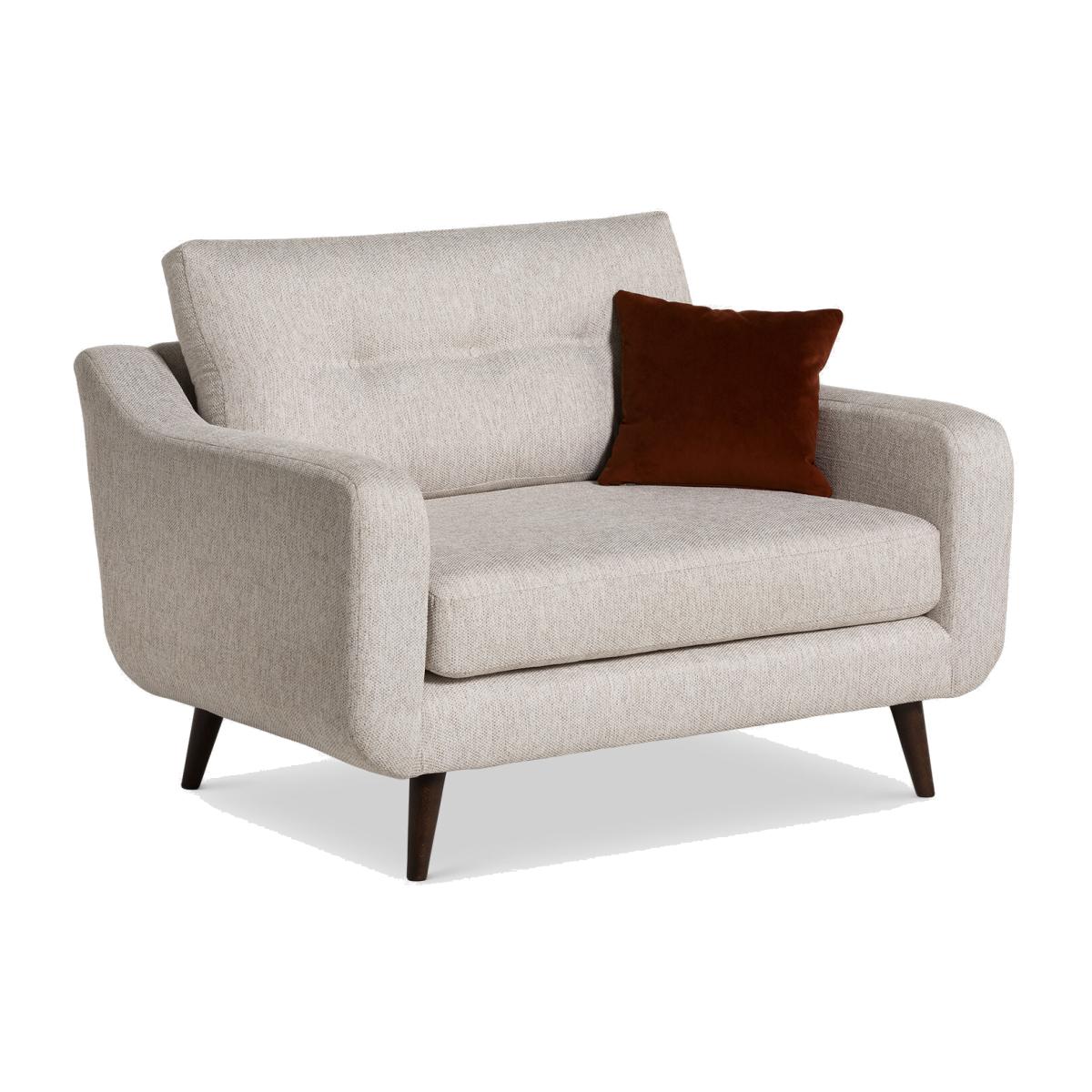 I love the Myers Snuggler because of its clean, understated design and versatile neutral tone, making it a great addition to a variety of interiors. It works particularly well in contemporary, minimalist, or Scandinavian schemes, but can effortlessly be dressed up with colourful cushions and throws for a cozier feel. A practical styling tip is to pair it with statement lighting or a rug to anchor the space and add warmth. Its compact size makes it ideal for smaller rooms or as an extra seating option, while the neutral upholstery provides flexibility for different decorative accents over time. Keep accessories minimal for a sleek look, or layer with textured cushions to introduce pattern and personality.