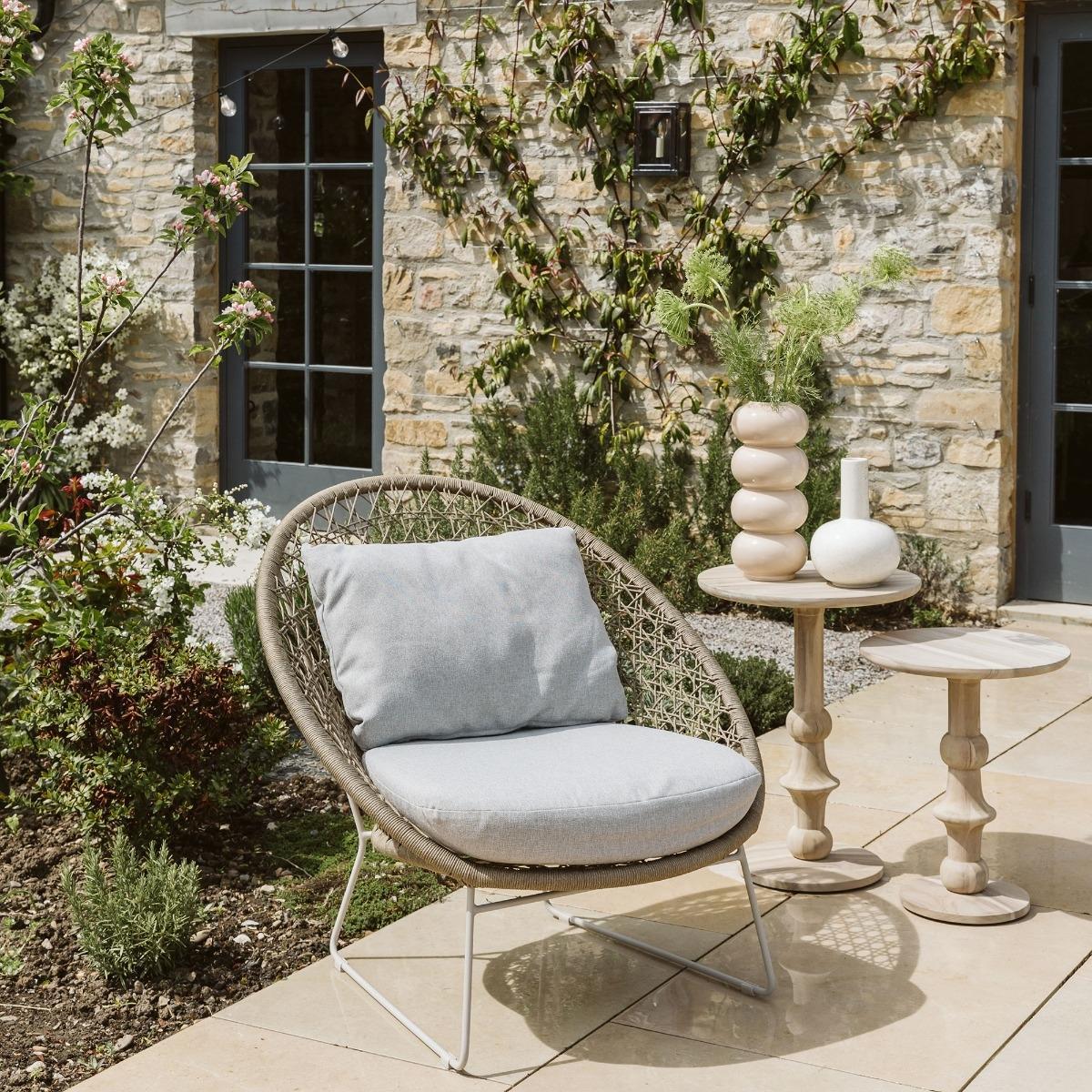 I love this garden chair for its relaxed yet sophisticated vibe; the woven design adds a hint of texture that’s perfect for outdoor spaces or even a stylish indoor sunroom. Its neutral camel tone paired with linen cushions makes it incredibly versatile, working well in contemporary, coastal, or boho interiors. For styling, consider layering with similar neutral tones or adding colourful outdoor cushions for a pop of personality. It’s also ideal for creating cosy outdoor seating areas that feel effortless but polished, especially when grouped with other natural materials like rattan or teak. Just a tip: pairing it with a small side table makes it perfect for lazy afternoons with a drink or a good book.