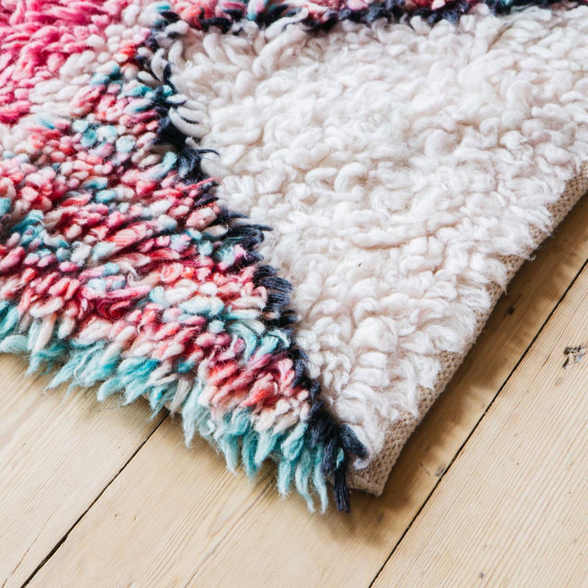 Hand-woven from sumptuous New Zealand wool, our Myla rug features a Berber-inspired design made from a kaleidoscope of pink and blue hues.