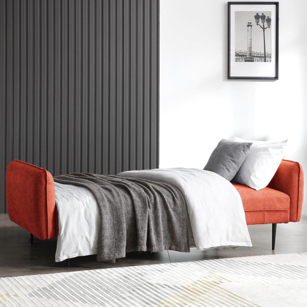 The Myles Sofabed Orange is a vibrant piece that adds a pop of colour and a contemporary feel to any space. I love it because its sleek design and bold hue make it a versatile statement piece, ideal for modern or eclectic interiors. It works well in renters' flats, guest rooms, or cosy living areas where functionality needs to meet style. Practical tips include pairing it with neutral, patterned cushions to soften the look or contrasting it with muted walls for extra impact. Its compact design also makes it perfect for smaller rooms, transforming effortlessly from seating by day to a comfortable bed by night.