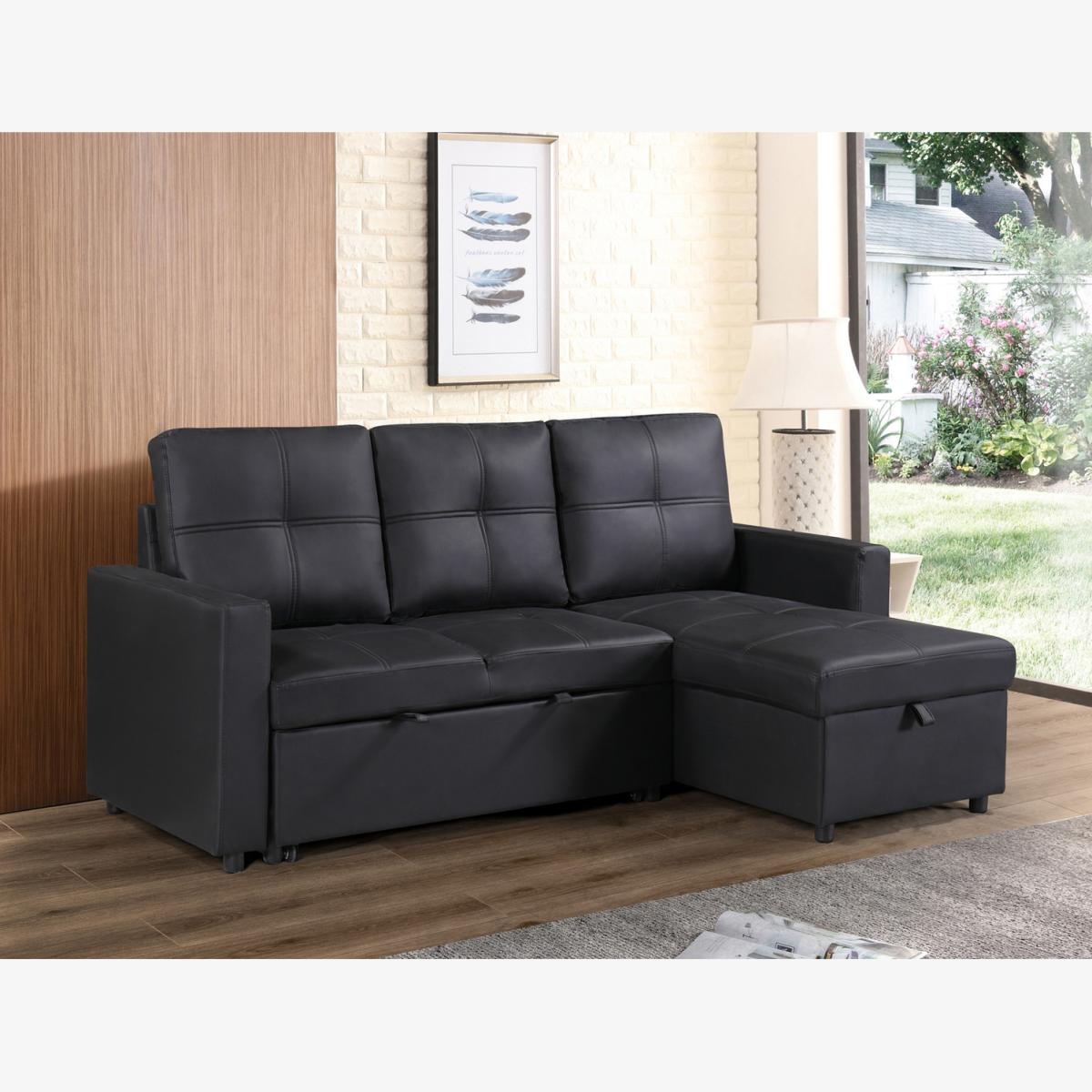 Myna Faux Leather L Shaped Corner Sofa Bed - Black