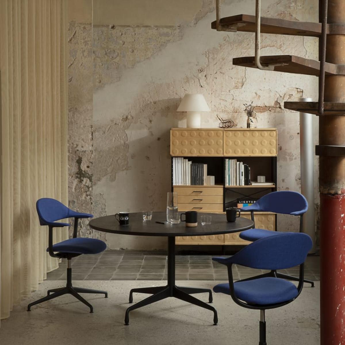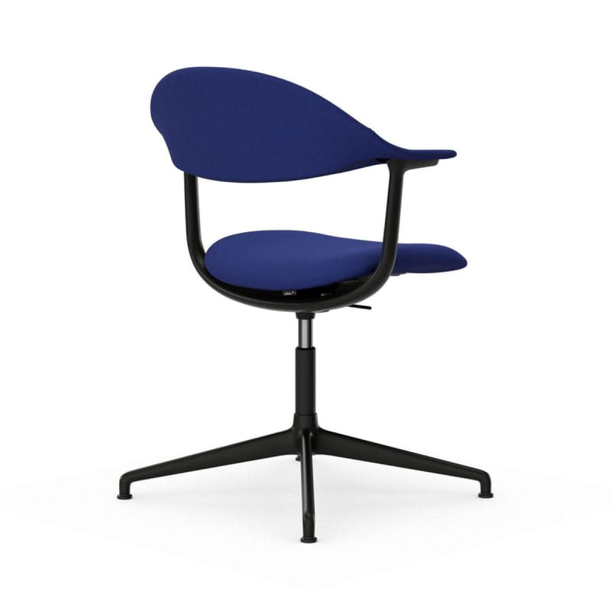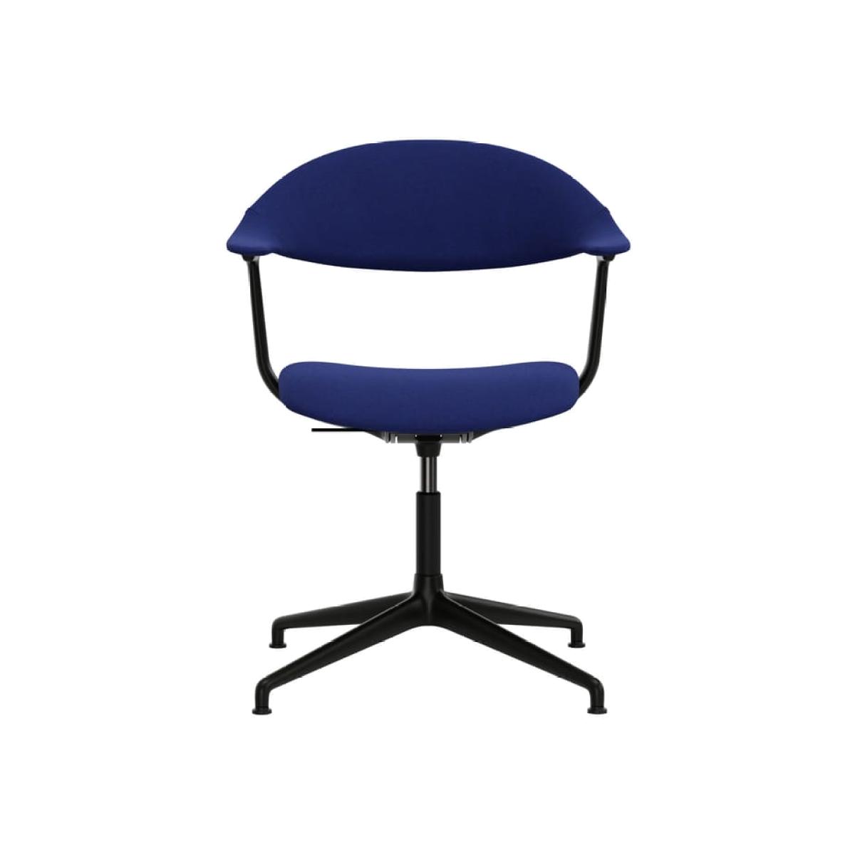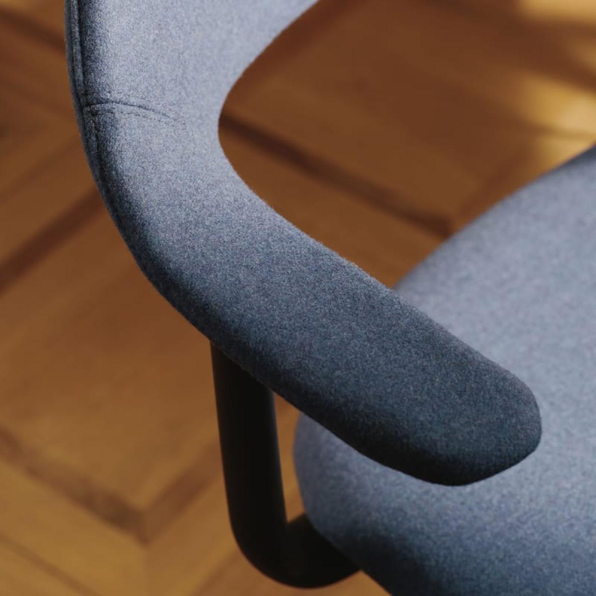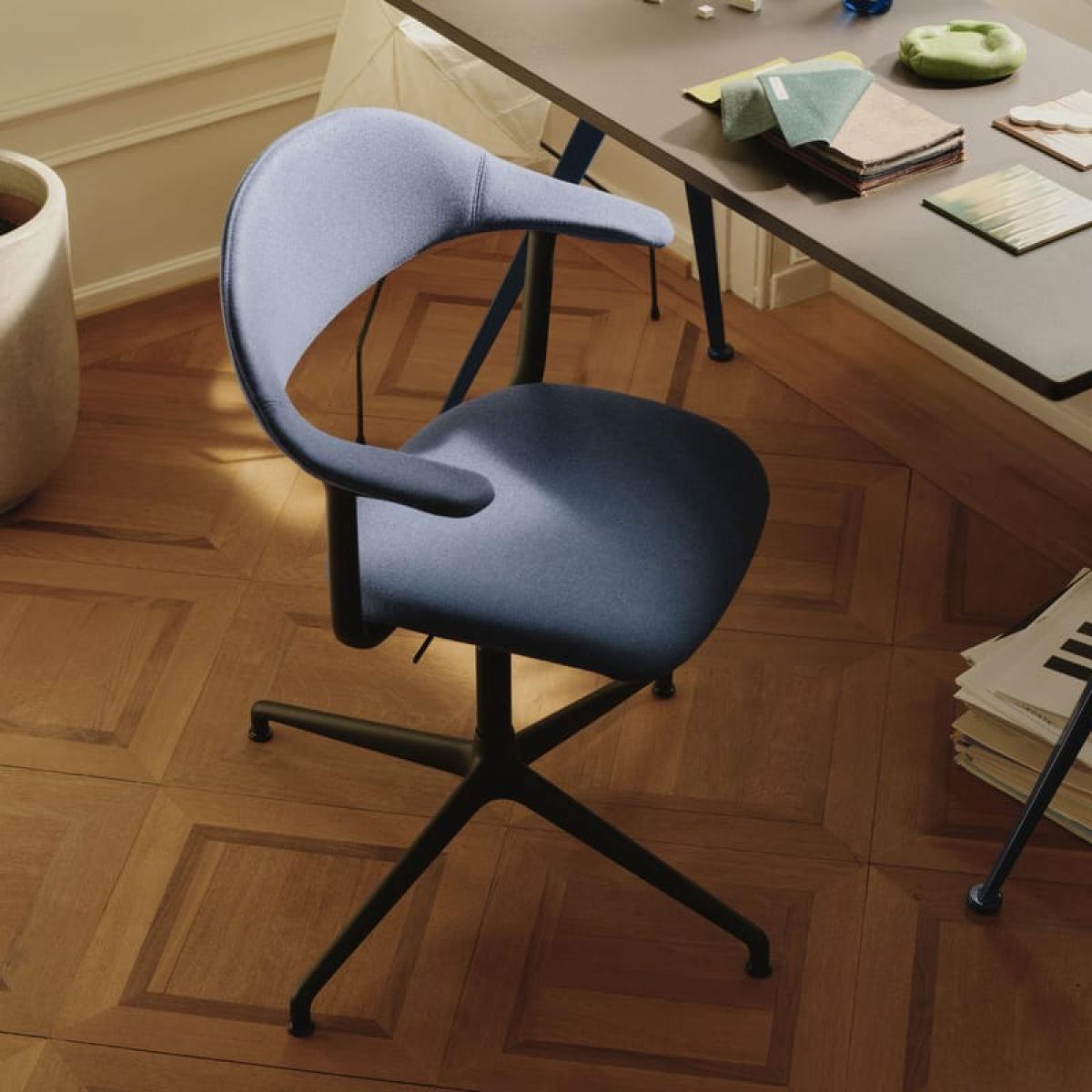 The Mynt Desk armchair stands out for its innovative approach, fusing minimalist aesthetics with ergonomic performance. Designed to fit any environment, from coworking space to home office to dining room, this versatile chair redefines comfort and style. Imagined under the vision of renowned designer Erwan Bouroullec, Mynt embodies functional elegance. Its clean, warm silhouette echoes the world of contemporary studios, while incorporating advanced technologies for an unprecedented seating experience. "In addition to the fact that Mynt had to have a certain performance, it had to be welcoming to any type of person, any type of task, at any time," explains Erwan Bouroullec. This Armchair offers revolutionary dynamic seating, where every movement keeps the body in Natural balance. Thanks to its lightweight, versatile design, Mynt blends harmoniously into modern desks, shared spaces or designer interiors. Its durable, future-proof design guarantees exceptional longevity: each component is individually replaceable, reducing environmental impact. With Mynt, combine aesthetics and comfort to transform your work or living space. Available in a range of colors and finishes, this armchair is the ideal answer for those looking for timeless, ergonomic design furniture. In detail: Variation : Electric blue (Cosy 2 Fabric) / Black Base, legs Brand : Vitra Designer : Erwan Bouroullec Type :Swivel armchair Colour : Seat & back : Electric blue (Cosy 2 fabric) - Black Structure Material :Upholstered back and seat covered in Cozy 2 fabric (20% polyamide, 80% new wool) - Frame: plywood and PU foam padding - Structure: powder-coated aluminum. Dimensions :W 69 x D 69 cm x H 96 cm Weight : 26.4 lb Characteristics : Upholstered seat & back - 4-branch Legs on Furniture glides - Dynamic seating experience - Swivel and height-adjustable seat - Seat damper - Adjustable backrest - Backrest flexes slightly when pressure is applied - Project date: 2025 Show less