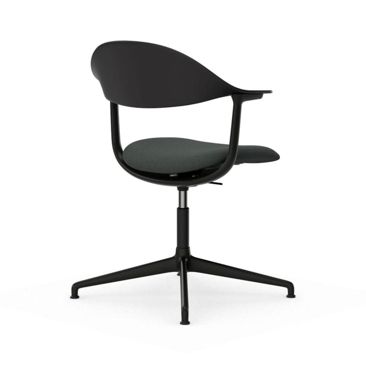The Mynt Desk armchair stands out for its innovative approach, fusing minimalist aesthetics with ergonomic performance. Designed to fit any environment, from coworking space to home office to dining room, this versatile chair redefines comfort and style. Imagined under the vision of renowned designer Erwan Bouroullec, Mynt embodies functional elegance. Its clean, warm silhouette echoes the world of contemporary studios, while incorporating advanced technologies for an unprecedented seating experience. "In addition to the fact that Mynt had to have a certain performance, it had to be welcoming to any type of person, any type of task, at any time," explains Erwan Bouroullec. This Armchair offers revolutionary dynamic seating, where every movement keeps the body in Natural balance. Thanks to its lightweight, versatile design, Mynt blends harmoniously into modern desks, shared spaces or designer interiors. Its durable, future-proof design guarantees exceptional longevity: each component is individually replaceable, reducing environmental impact. With Mynt, combine aesthetics and comfort to transform your work or living space. Available in a range of colors and finishes, this armchair is the ideal answer for those looking for timeless, ergonomic design furniture. In detail: Variation : Seat Grey (Fabric) / Back black (Plastic) / Base, legs black Brand : Vitra Designer : Erwan Bouroullec Type :Swivel armchair Colour : Seat: Sierra Grey (Plano fabric) - Back: Basic Black (recycled plastic) - Structure: Black Material :Backrest: recycled plastic made from post-industrial waste, 100% recyclable - Upholstered seat covered with Plano fabric - Frame: Plywood and PU foam padding - Structure: powder-coated aluminum. Dimensions :W 69 x D 69 cm x H 96 cm Weight : 26.4 lb Characteristics : Upholstered seat - 4 Legs on Furniture glides - Dynamic seating experience - Swivel and height-adjustable seat - Seat damper - Adjustable backrest - Backrest flexes slightly when pressure is applied - Project date: 2025 Show less