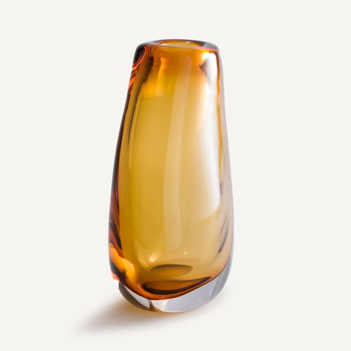 I love this vase because of its warm, amber-toned hand-blown glass that adds a subtle colour touch without overpowering a space. Its versatile shape works equally well in contemporary, minimalist interiors or more eclectic settings, making it a great styling piece for sideboards or coffee tables. For best results, I recommend pairing it with simple, understated flowers or foliage to highlight the beautiful glasswork. It also works well on its own as a sculptural object, so don’t shy away from placing it where it can be appreciated as a standalone statement. Keep the surrounding décor simple to let the tones and craftsmanship shine through.