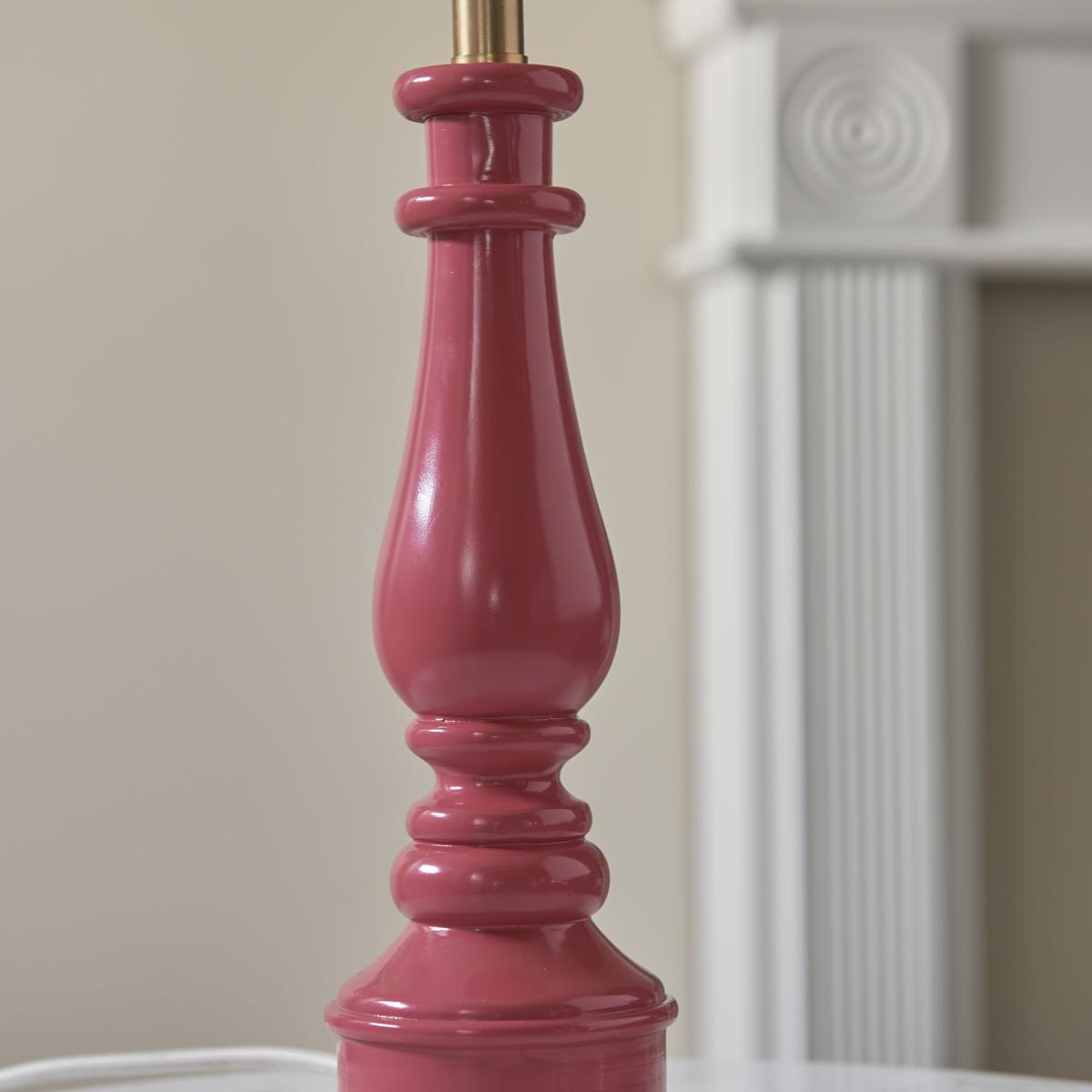 Getting it's inspiration from turned classic staircase spindles, the Myrtle table light is finished in high gloss pink clay colour resin, with switched B22 brass lamp holder and pale braided fabric flex. Choose from one of our 25cm or 30cm decorative fabric shades to complete this timeless country luxe look.