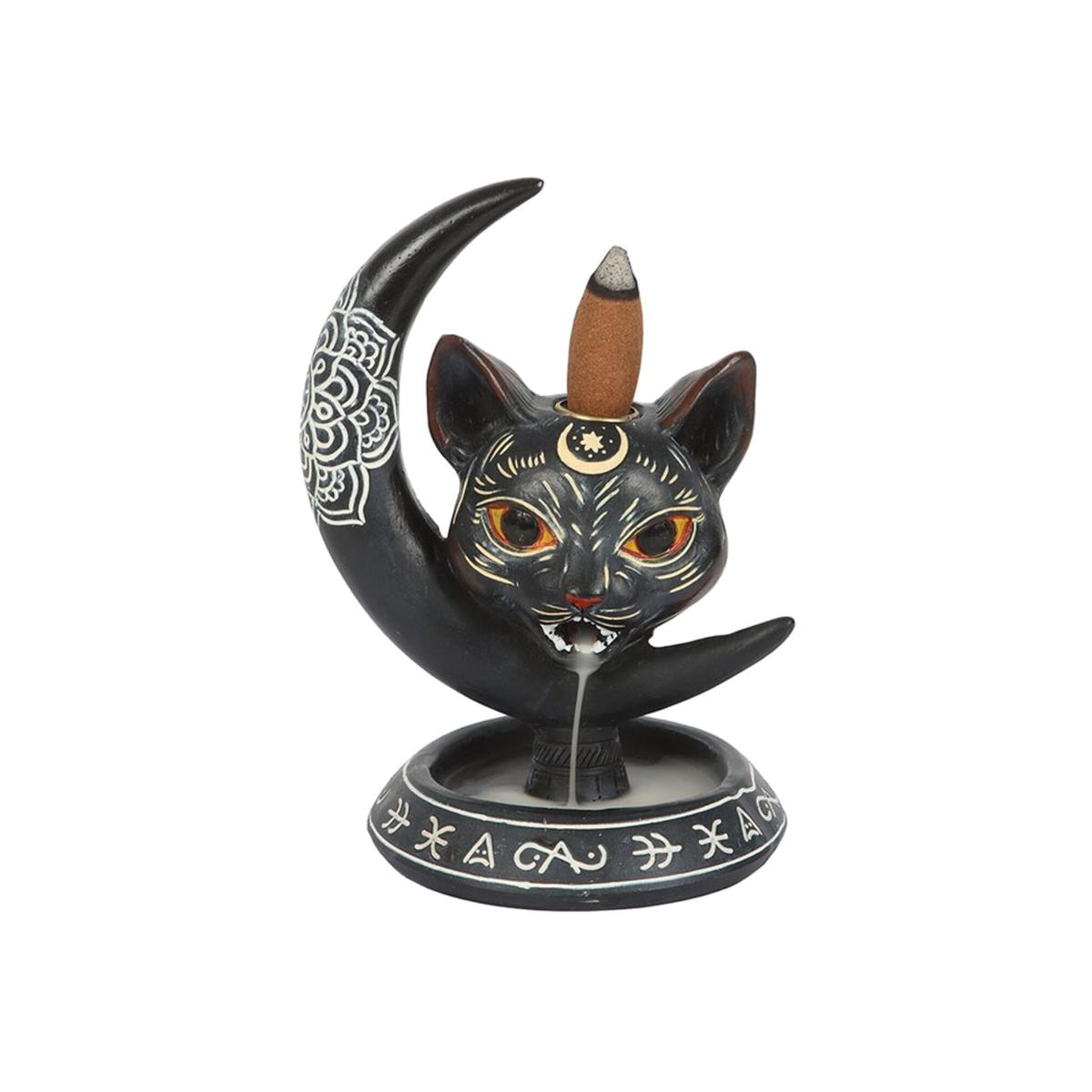 Mystic Cat Moon Backflow Incense Burner - Black