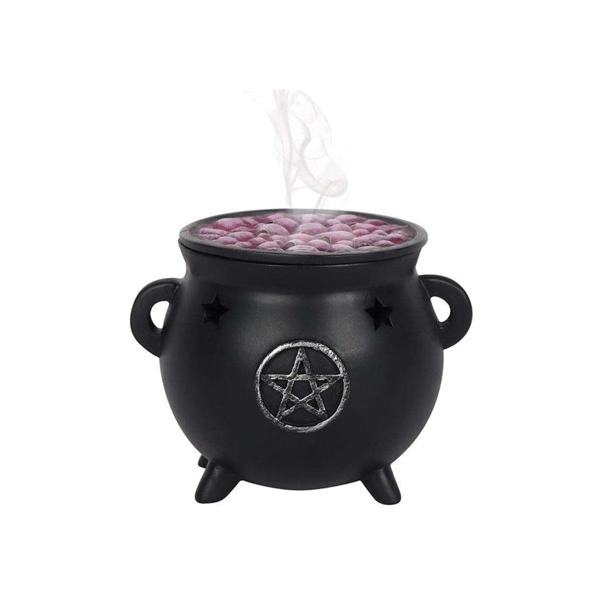 Mystic Pentagram Cauldron Smoke Rising Incense Holder - Black