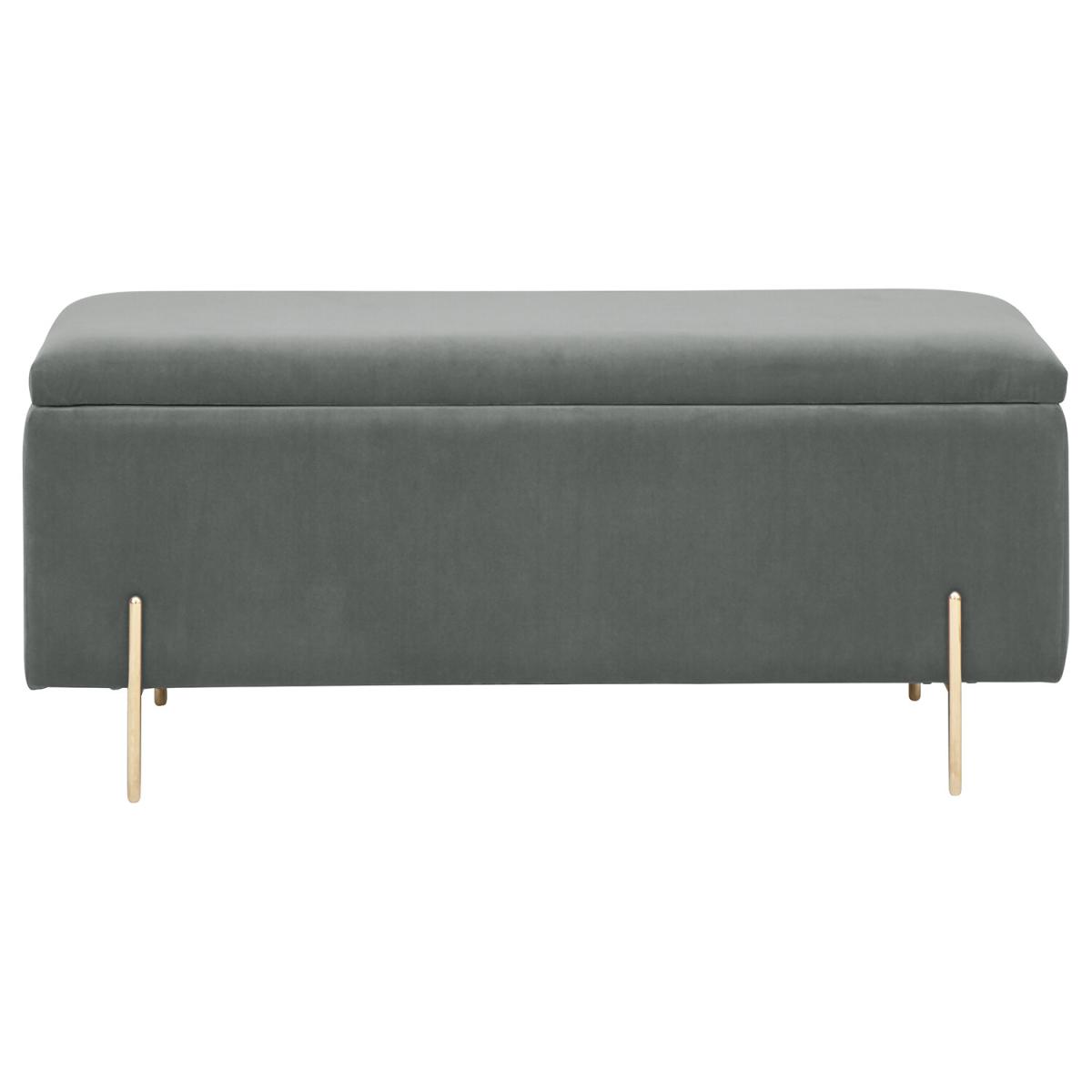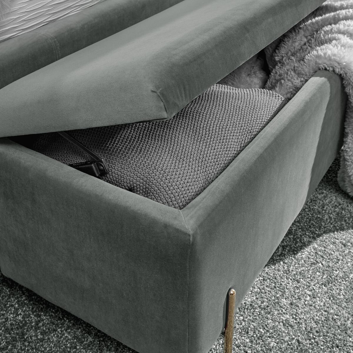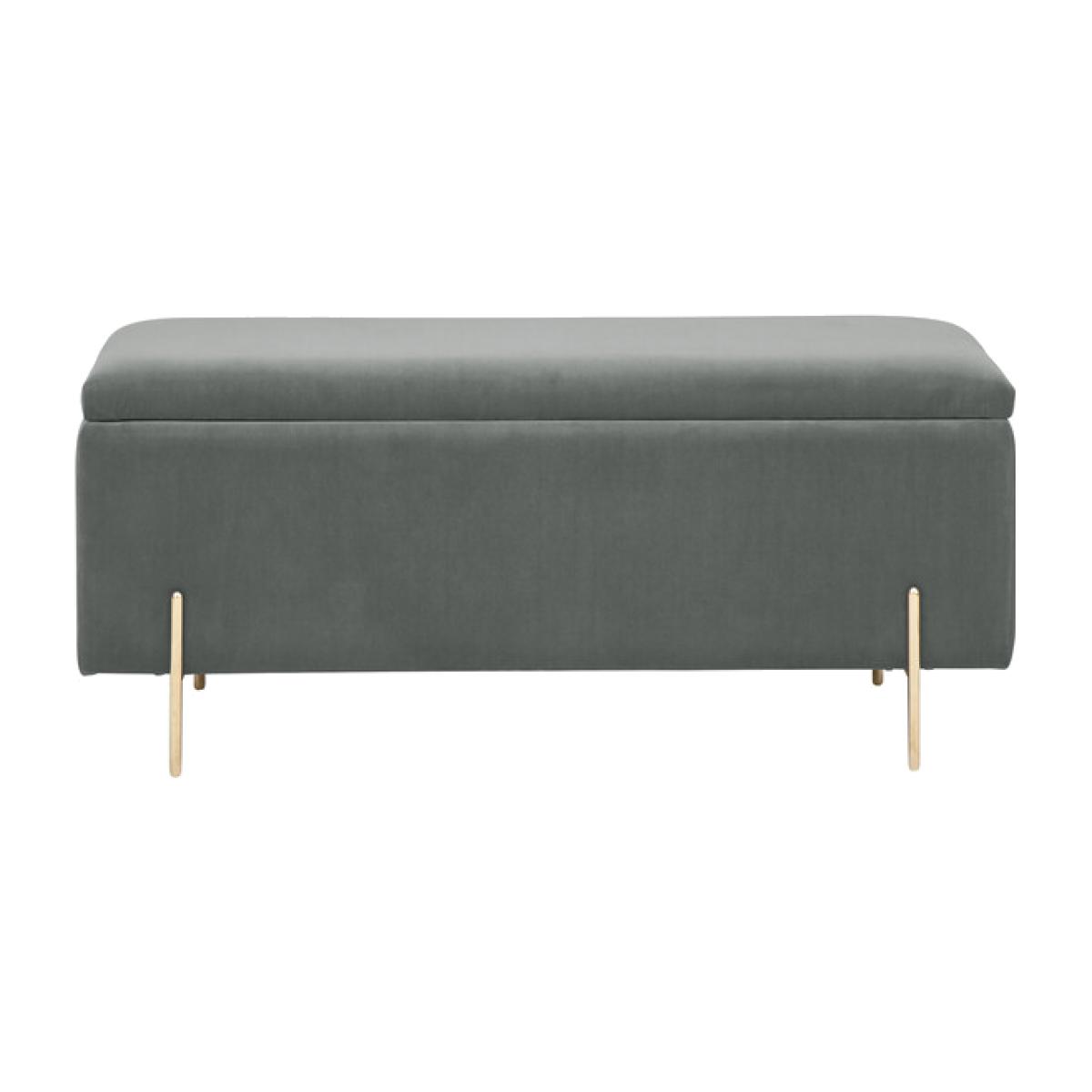 Every bedroom needs a storage box and this Mystica Ottoman Storage Bench is the perfect choice. The simple design makes it a good match for most interiors, pick from a selection of in vogue colourways to suit your style. The ottoman has a hinged lid and features a generous lined compartment that's ideal for extra bedding and cushions. Both frame and seat are upholstered in a tactile plush fabric with a matt velvet pile that looks and feels indulgent. The simple gold effect metal legs add to the minimalist look and feel.
