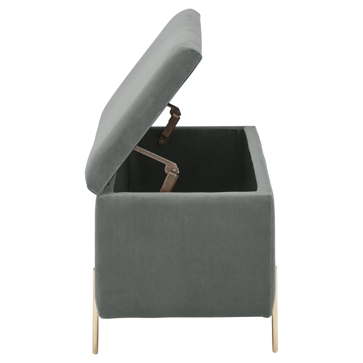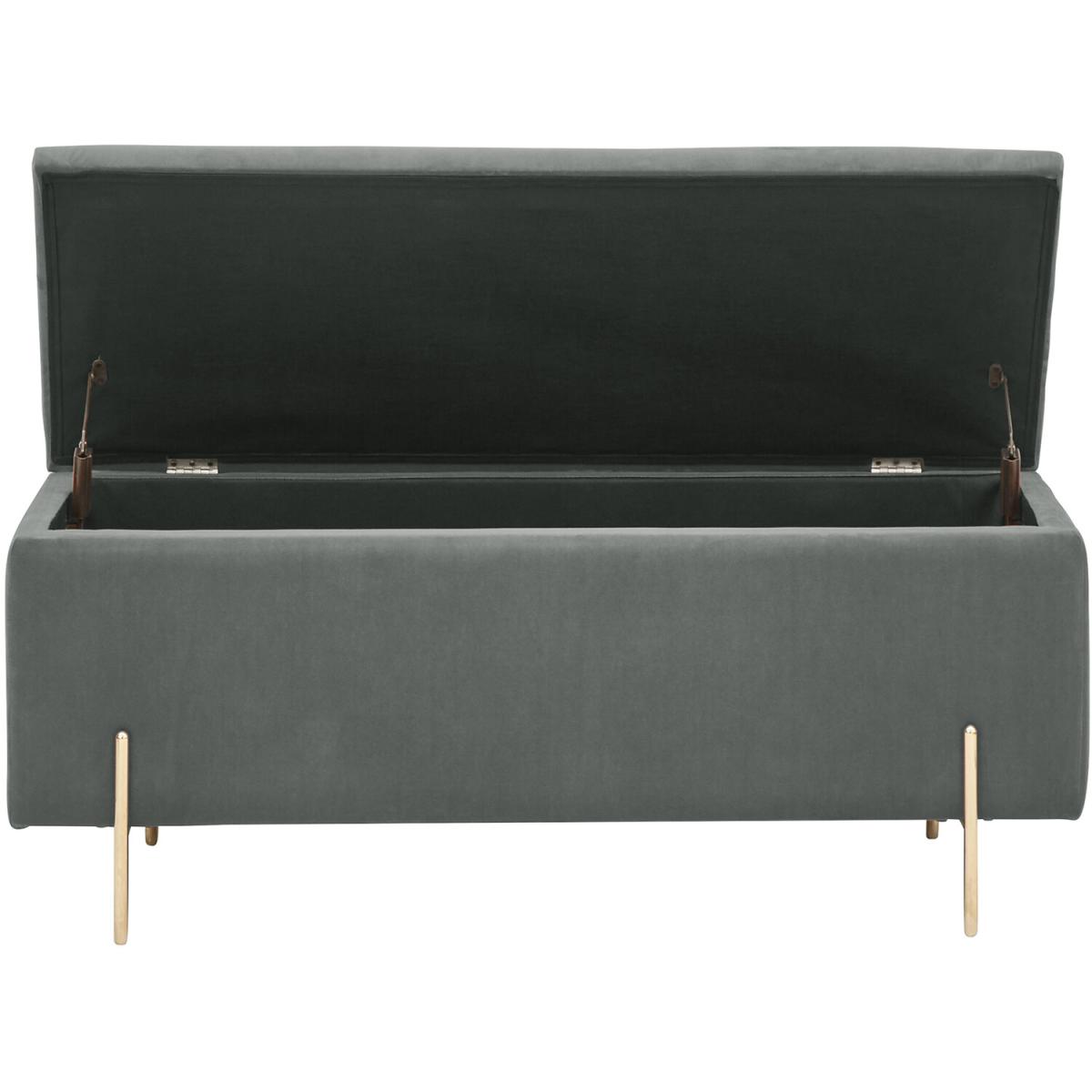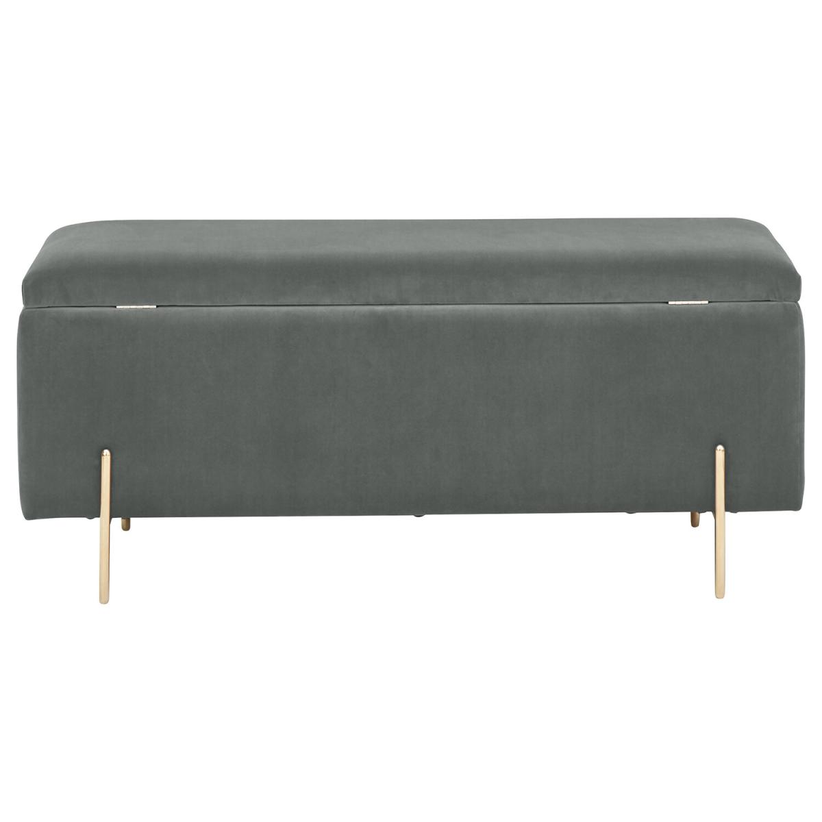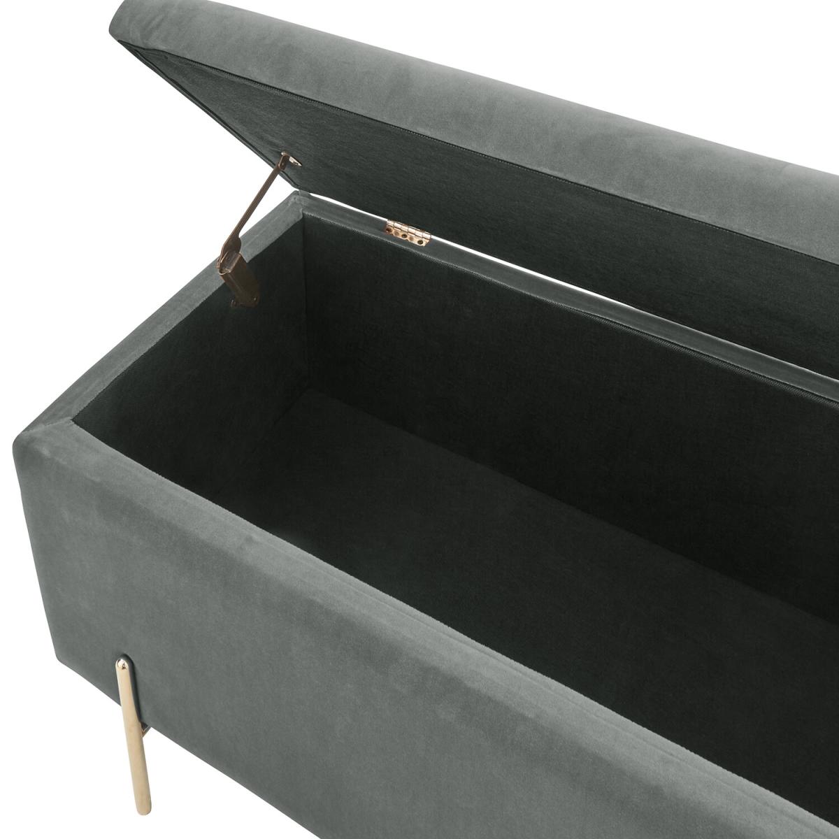 Every bedroom needs a storage box and this Mystica Ottoman Storage Bench is the perfect choice. The simple design makes it a good match for most interiors, pick from a selection of in vogue colourways to suit your style. The ottoman has a hinged lid and features a generous lined compartment that's ideal for extra bedding and cushions. Both frame and seat are upholstered in a tactile plush fabric with a matt velvet pile that looks and feels indulgent. The simple gold effect metal legs add to the minimalist look and feel.