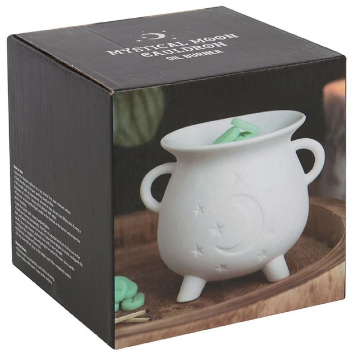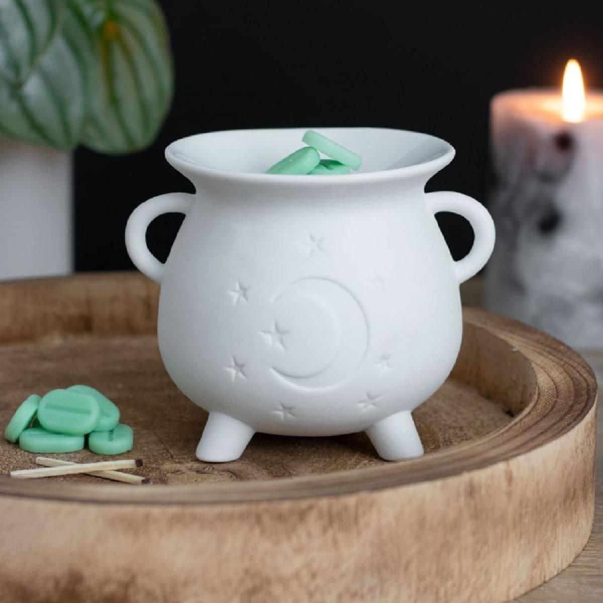 Mystical Moon Cauldron Oil Burner Warm Wax Melts and Oils - White