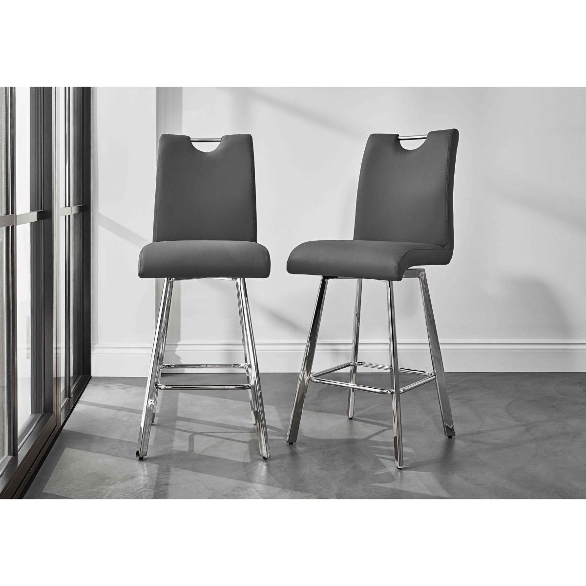 Showcasing a wide choice of statement living and dining furniture for compact spaces, our Nadal range makes it easy and affordable to create an impactful modern home. The look is bold and confident – tables have glass tops and U-shaped pedestal bases, storage pieces give shelving an asymmetric twist, and every piece has that gorgeous high-gloss finish. Across the range you’ll notice thoughtful ergonomic features. The dining table extends to seat eight, the bar table is designed to make the most of a kitchen diner, and dining chairs and bar stools have space-saving swivel bases. The Nadal range is exclusively available at Furniture Village. Transform a kitchen countertop into a stylish dining space with this set of two swivel bar stools. Striking and modern, bar stools have chrome-effect legs and dark grey faux leather upholstery. Why you'll love it Striking modern bar stool set at a great-value price. Comfortable, ergonomic design – swivel bases and integrated handles. Supportive, curved and well cushioned. Chrome-effect metal legs with footrests. Elegant dark grey faux leather upholstery. Also available in a set of 4. Only at Furniture Village. This pair of swivel bar stools is part of our Nadal range. What you need to know Foam seat cushioning, metal frames and legs. Shop our exclusive Nadal range for a huge choice of modern living and dining furniture.