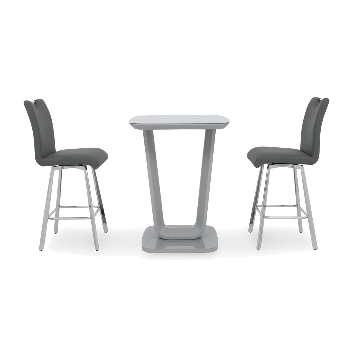 Showcasing a wide choice of statement living and dining furniture for compact spaces, our Nadal range makes it easy and affordable to create an impactful modern home. The look is bold and confident – tables have glass tops and U-shaped pedestal bases, storage pieces give shelving an asymmetric twist, and every piece has that gorgeous high-gloss finish. Across the range you’ll notice thoughtful ergonomic features. The dining table extends to seat eight, the bar table is designed to make the most of a kitchen diner, and dining chairs and bar stools have space-saving swivel bases. The Nadal range is exclusively available at Furniture Village. Enjoy a morning cup of coffee or an evening glass of wine at this stylish high-gloss bar table with pedestal base. This bar table set includes two very comfortable swivel-base bar stools. Why you'll love it Cool, compact and with a fabulous high-gloss finish. Striking modern bar dining set at a great-value price. Bar table has a tough tempered glass top. Stylish U-shaped pedestal base is very diner-friendly. Seats 4. Set includes 2 swivel bar stools with chrome-effect legs and footrests. Supportive, curved and well cushioned. Elegant dark grey faux leather upholstery. Only at Furniture Village. This bar table set is part of our Nadal range. What you need to know Bar stools have foam seat cushioning, and metal frames and legs. Please note that under direct light, the glass table top may show very small surface scratches as a result of the polishing process. Tempered glass should be moved carefully. Replace immediately if damaged. We recommend using coasters and placemats at all times. Shop our exclusive Nadal range for a huge choice of modern living and dining furniture.