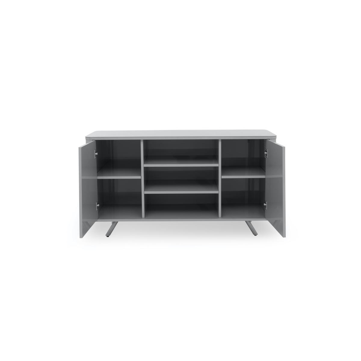 Showcasing a wide choice of statement living and dining furniture for compact spaces, our Nadal range makes it easy and affordable to create an impactful modern home. The look is bold and confident – tables have glass tops and U-shaped pedestal bases, storage pieces give shelving an asymmetric twist, and every piece has that gorgeous high-gloss finish. Across the range you’ll notice thoughtful ergonomic features. The dining table extends to seat eight, the bar table is designed to make the most of a kitchen diner, and dining chairs and bar stools have space-saving swivel bases. The Nadal range is exclusively available at Furniture Village. With its asymmetric cupboard doors and open shelving space – a style note that reflects the shape of the range’s U-shaped pedestal dining table – this sideboard is both striking and practical. Why you'll love it Cool, compact and with a fabulous high-gloss finish. Striking modern sideboard at a great-value price. Tough tempered glass top. Stylish storage with asymmetric open and closed shelving. Soft-closing cupboard doors. Only at Furniture Village. This wide sideboard is part of our Nadal range. What you need to know 2 cupboards each have 1 fixed shelf. Please note that under direct light, the glass top may show very small surface scratches as a result of the polishing process. Tempered glass should be moved carefully. Replace immediately if damaged. We recommend using coasters and placemats at all times. Shop our exclusive Nadal range for a huge choice of modern living and dining furniture. WARNING!