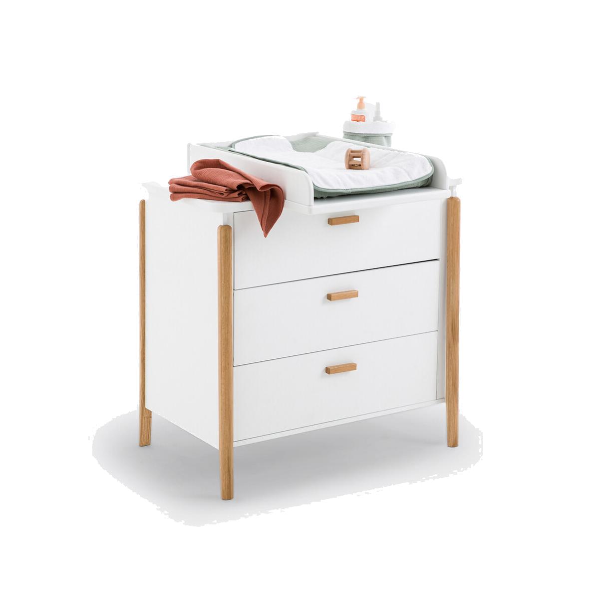 Crafted from lacquered MDF with solid oak legs, the Nadil changing table with 3 storage drawers is as elegant as it is practical. Created by La Redoute Interiors. Product Details • 3 drawers • Removable changing top • MDF structure with waterbase finish. FSC® certified wood • Base and handles in solid oak. Quality: • This product complies with current safety requirements. Dimensions • Width: 90cm • Height: 85.5cm • Depth: 54.2cm • Changing mat space: L48 x D68cm • Assembly required. • WOOD FROM SUSTAINABLY MANAGED FORESTS. FSC® certified wood comes from forests that are environmentally, socially and economically well managed. Dimensions and weight of parcel2 parcels • L100 x H63.5 x D21.5cm. 34.4kg. • L84 x H48.5 x D17.5cm. 23.7kg.