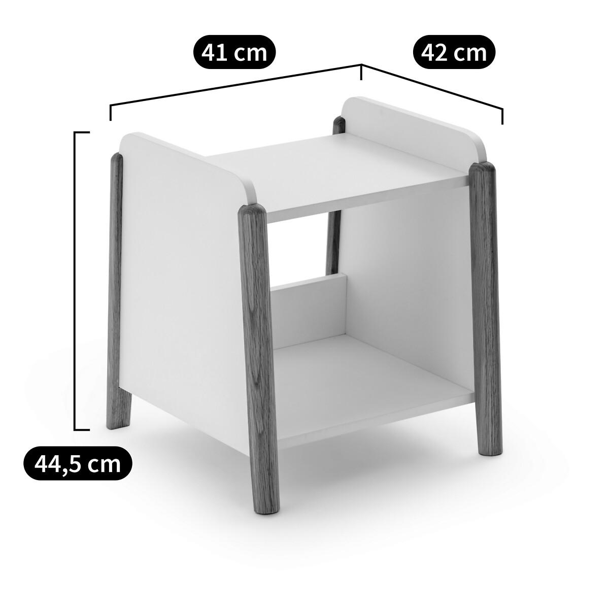 Lacquered MDF and FSC®-certified solid oak, varnished finish... The Nadil children's bedside table is as elegant as it is practical for storing all its secrets. Created by La Redoute Interiors. Product Details • In FSC®-certified lacquered MDF, acrylic finish (solvent-free water-based paint) • FSC® certified solid oak legs, nitrocellulose varnish finish • 1 storage compartmentDimensions. Overall • Width: 41cm • Height: 44.5cm • Depth: 42cm • Weight: 7.3kg. Usable space • Compartment: L34 x H29.4 x D31.3cm • Assembly required. • WOOD FROM SUSTAINABLY MANAGED FORESTS. FSC® certified wood comes from forests that are environmentally, socially and economically well managed. Dimensions and weight of parcel1 parcel • L54.5 x H51.5 x D16cm. 9.5kg.