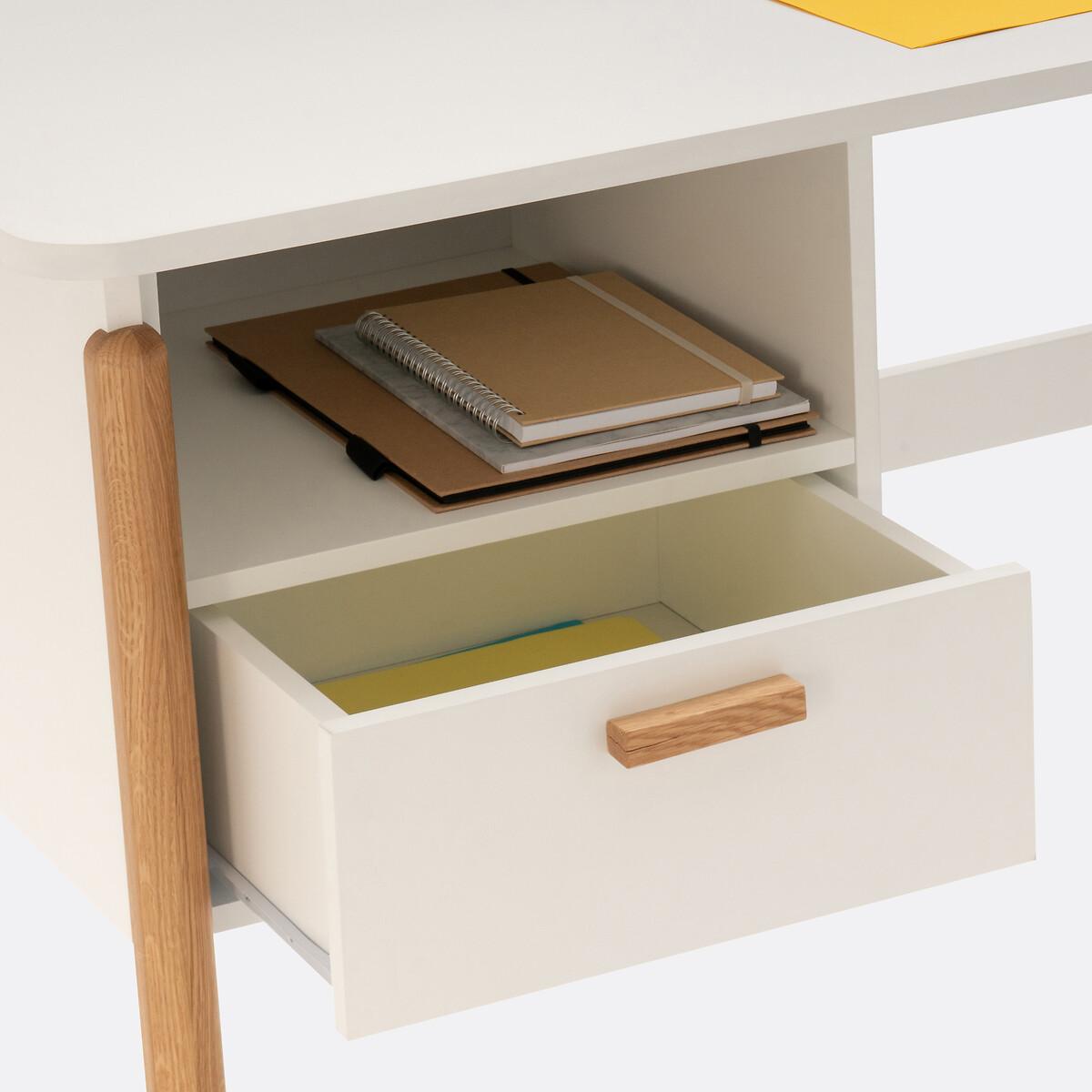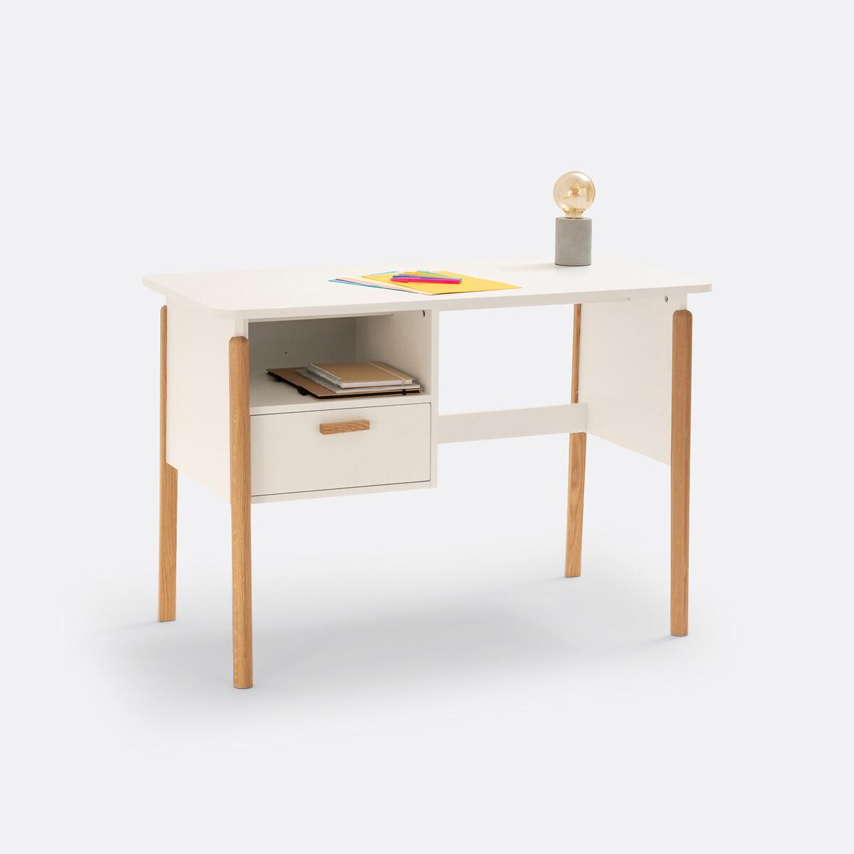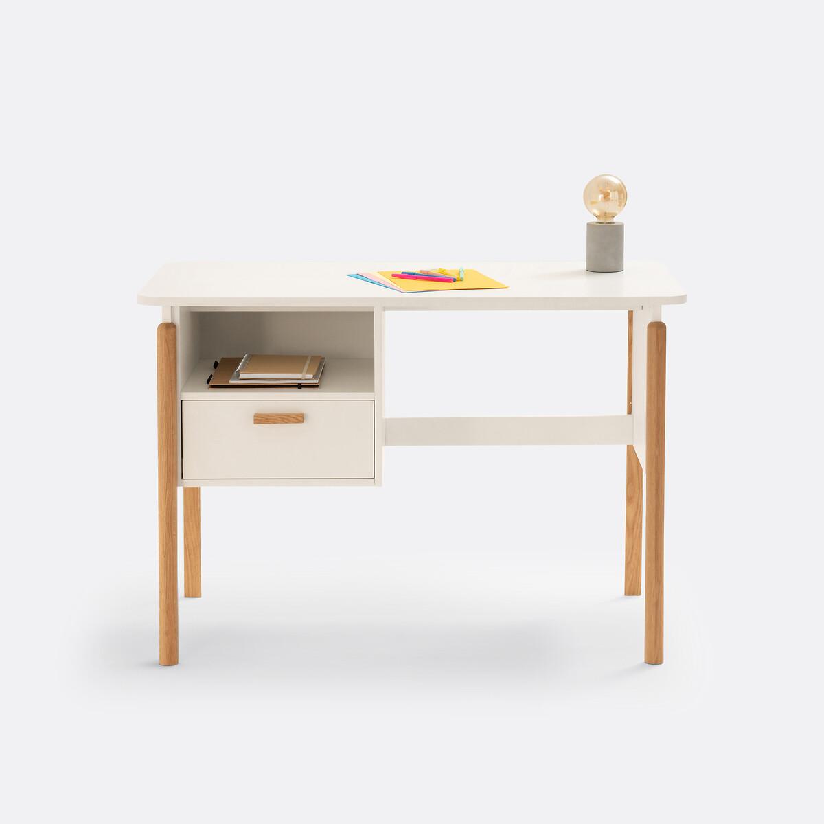 It's homework time! To allow your children to give the best of themselves, our designers at La Redoute Interiors have created Nadil, the clever design desk that will fit even in the smallest bedrooms.. A creation that deserves a 20/20.Product Details • In FSC®-certified lacquered MDF, acrylic finish (solvent-free water-based paint) • FSC® certified solid oak legs, nitrocellulose varnish finish • 1 drawer • 1 compartmentDimensions. Overall • Width: 110cm • Height: 75cm • Depth: 55cm • Weight: 27kg. Usable space • Drawer: L33.4 x H12.4 x D33.3cm • Compartment: L39 x H14 x D40.3cm • Assembly required. • WOOD FROM SUSTAINABLY MANAGED FORESTS. FSC® certified wood comes from forests that are environmentally, socially and economically well managed. Dimensions and weight of parcel1 parcel • L120 x H64.5 x D15cm. 30.9kg.
