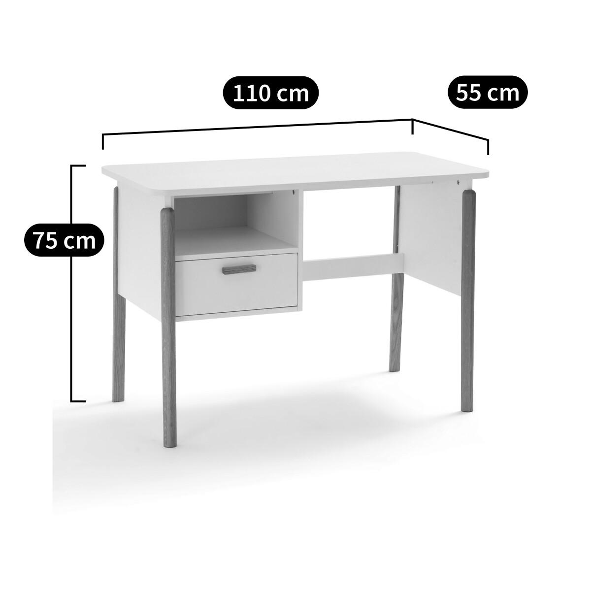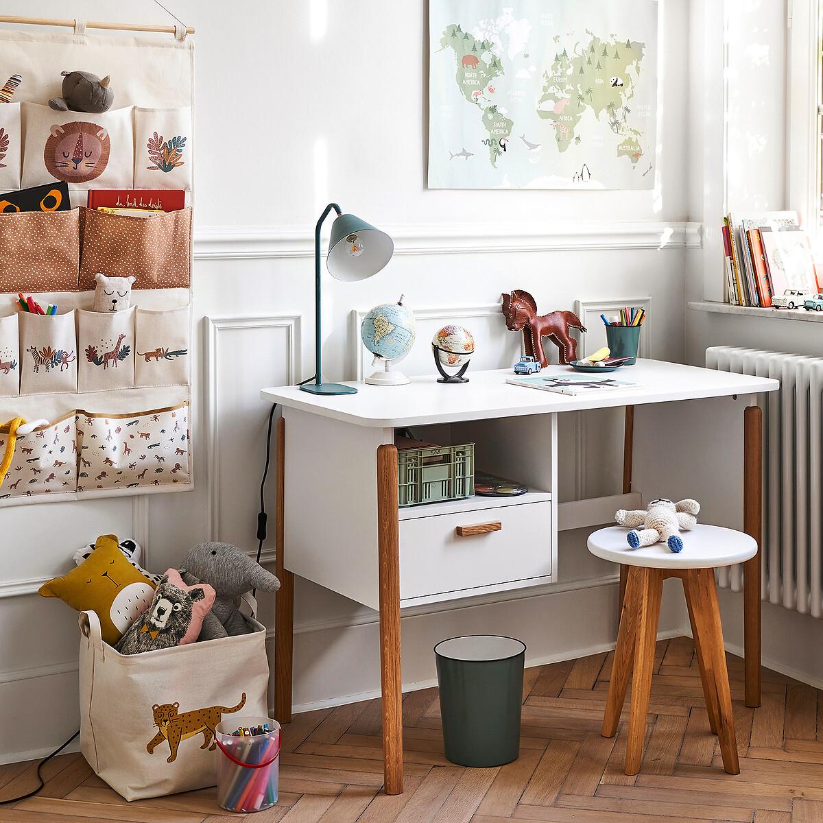 It's homework time! To allow your children to give the best of themselves, our designers at La Redoute Interiors have created Nadil, the clever design desk that will fit even in the smallest bedrooms.. A creation that deserves a 20/20.Product Details • In FSC®-certified lacquered MDF, acrylic finish (solvent-free water-based paint) • FSC® certified solid oak legs, nitrocellulose varnish finish • 1 drawer • 1 compartmentDimensions. Overall • Width: 110cm • Height: 75cm • Depth: 55cm • Weight: 27kg. Usable space • Drawer: L33.4 x H12.4 x D33.3cm • Compartment: L39 x H14 x D40.3cm • Assembly required. • WOOD FROM SUSTAINABLY MANAGED FORESTS. FSC® certified wood comes from forests that are environmentally, socially and economically well managed. Dimensions and weight of parcel1 parcel • W120 x H15 x D64cm, 30kg