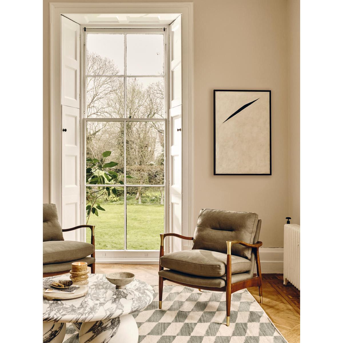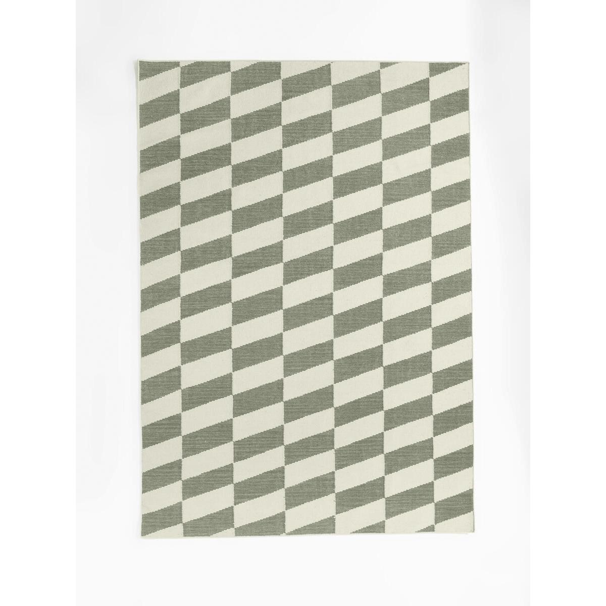 The soft furnishings of Soho Warehouse form the inspiration forthe Nadine rug. Cast in a woven flatweave style, the rug balancesdepth and airiness with a geometric design in sage and oatmealtones. Lay it underfoot to fill out expansive floor space. Flatweave geometric-style rug. Tones of oatmeal with sage. Woven in India. Inspired by Soho Warehouse.