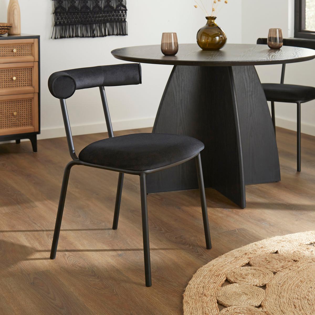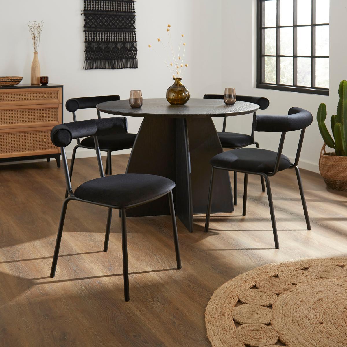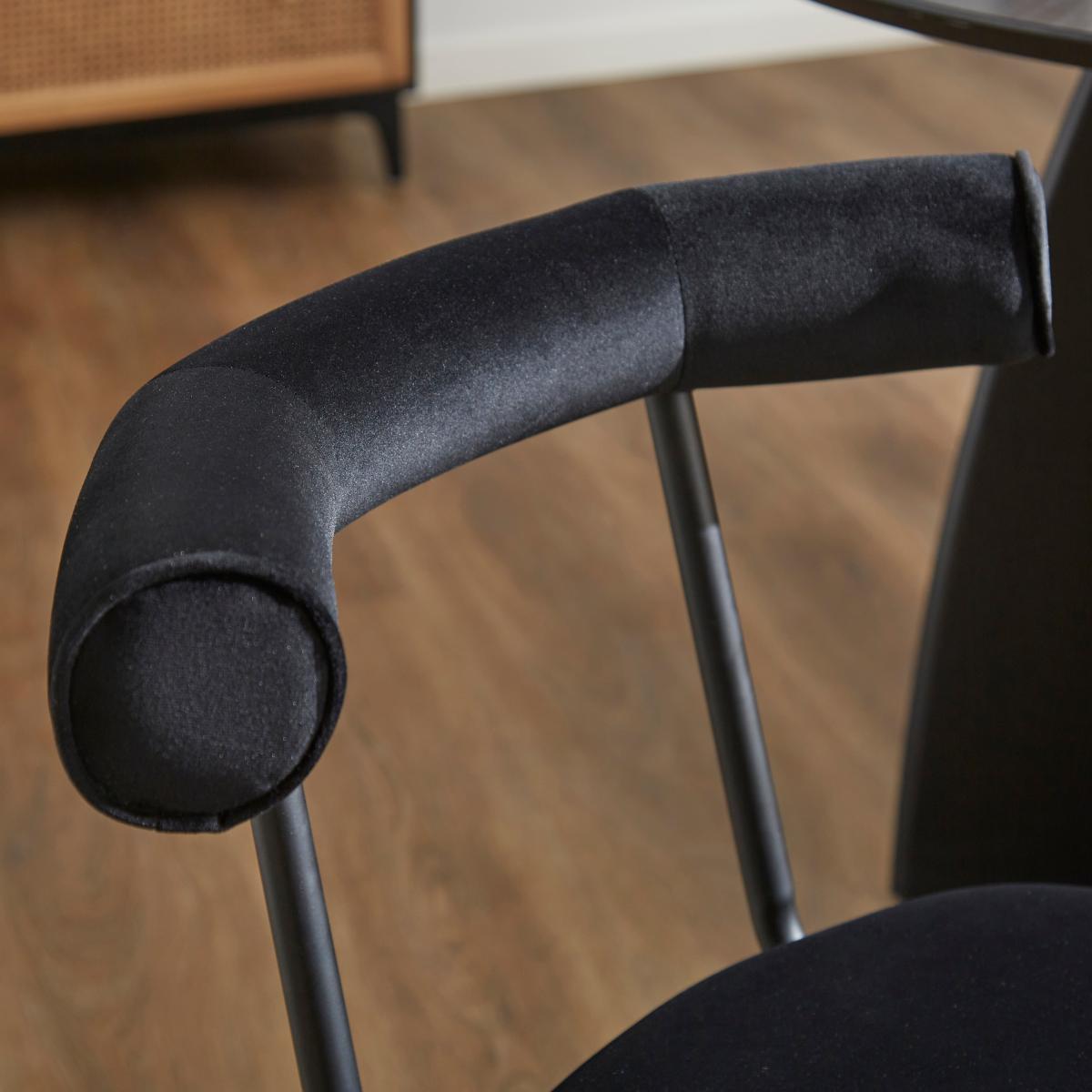 I love the Nadya velvet chair for its sleek, contemporary appeal that adds a touch of luxe without feeling overdone. Its black velvet finish makes it versatile, working well in modern, minimalist, or even eclectic interiors. It pairs beautifully with both neutral colour schemes and bold accents, providing a sophisticated seating option that feels both comfortable and stylish. When styling, consider contrasting textures-like a matte or wood table-to make the velvet pop, or soften the look with warm metallic accessories. Given its plush fabric, it's best suited for formal dining areas or dedicated sitting zones rather than high-traffic spaces, ensuring it remains looking pristine.