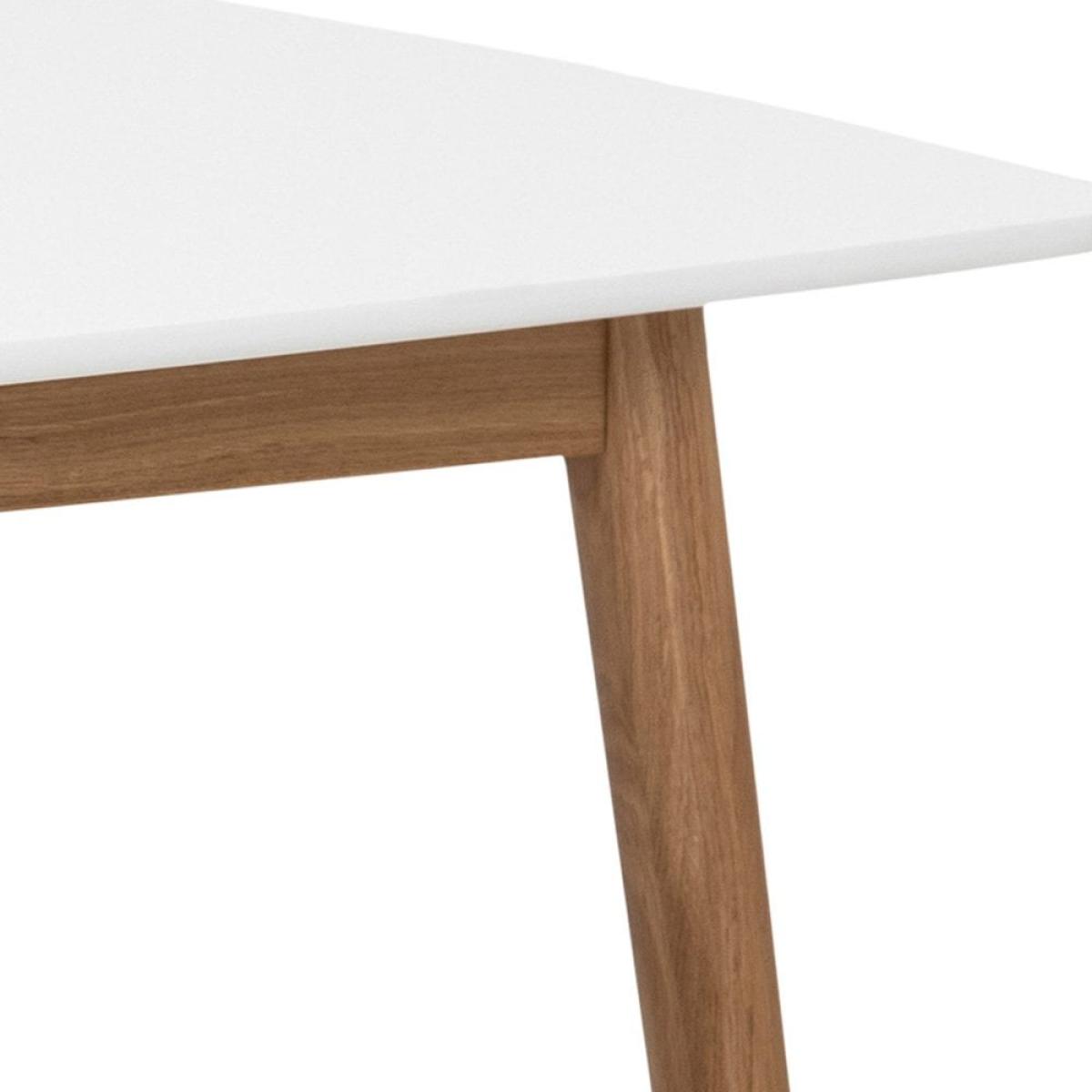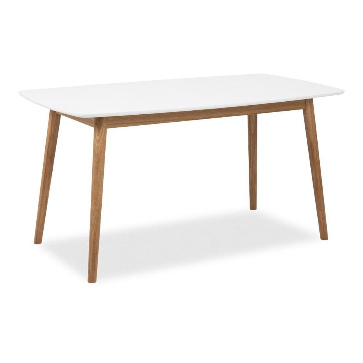 The Nagano dining table will easily slip into any dining room interior. With a sleek and simple silhouette, tapered oak legs and a rectangle-shaped tabletop in white, the Nagano has got you covered for breakfast, lunch and dinner.