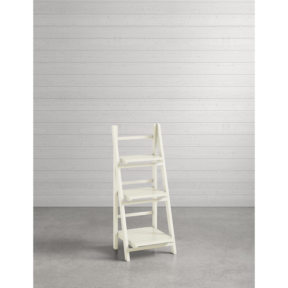 Add some seriously smart storage to your living spaces with this folding shelving unit. Featuring three spacious shelves for you to proudly display your favourite books, art or photographs, this unit conveniently folds up to fit neatly against a wall, making it perfect for those with limited space. A simple design and neutral colour make these shelves complement a wide range of decors, while a matt lacquer adds a little extra durability."}