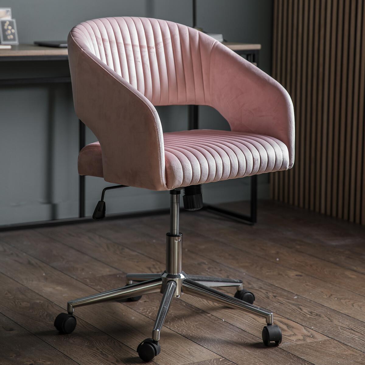 Add a touch of glamour to a home office with the sophisticated Nagpur Swivel Chair. Upholstered in tactile velvet which pairs beautifully with the silver base, the chair offers style, comfort and practicality. The padded back and seat feature stitch detailing, whilst castors give easy manoeuvrability, plus there is tilt adjustment and gas lift seat height adjustment. Composition: Velvet Product Dimensions: 96cmx56.5cmx56cm. Please remember to measure your available space before ordering. Packaged Dimensions: 63cmx59cmx52 cm Weight: 12.8 kg. This product will be dispatched by one of our trusted suppliers. You’ll be contacted by their selected courier about your delivery. Please note: this product cannot be delivered to all Offshore Islands, Northern Ireland or Republic of Ireland.