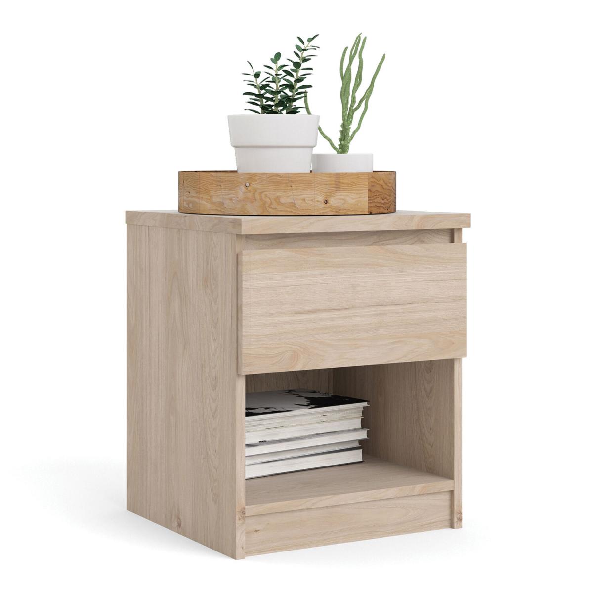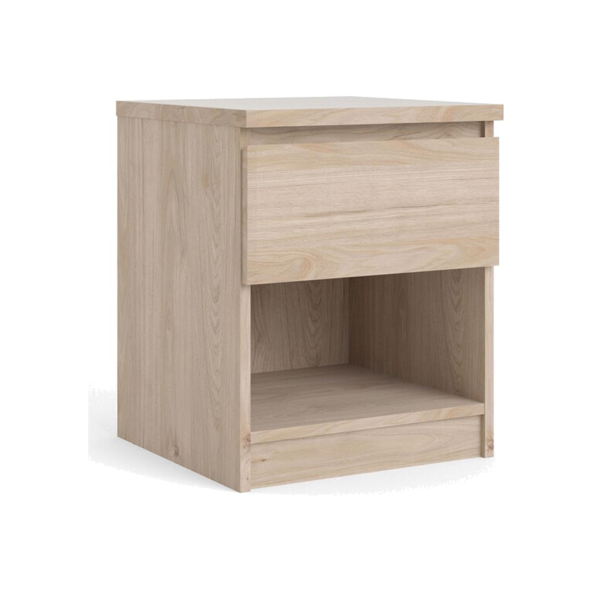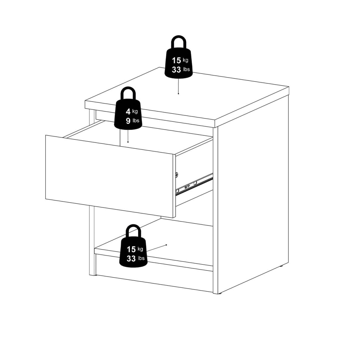 The Naia 1-Drawer 1-Shelf Bedside Table offers a tribute to timeless furniture design with a modern edge. This sleek and stylish Naia table can easily fit into your interior and provide the space you need for your alarm clock, a book, and all your other nighttime essentials. Easy to coordinate with a variety of home decor styles, this table is finished with a high-quality laminated board that's resistant to damage and scratches, moisture, and high temperature for your convenience.