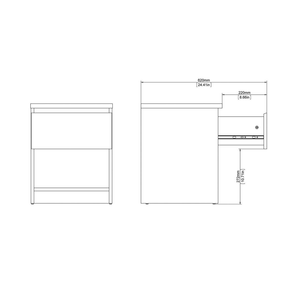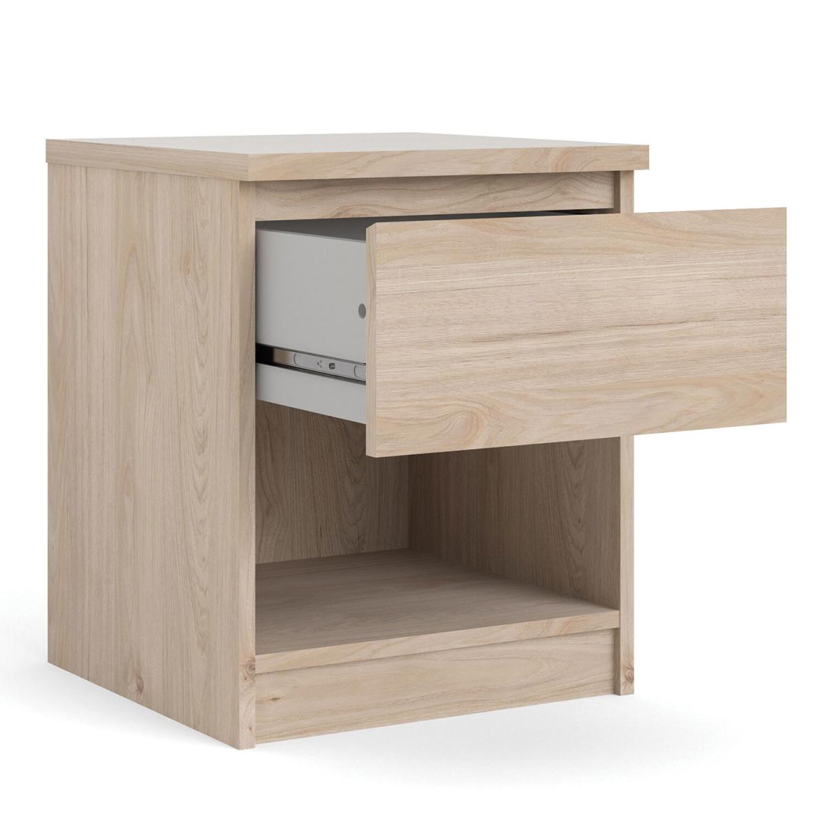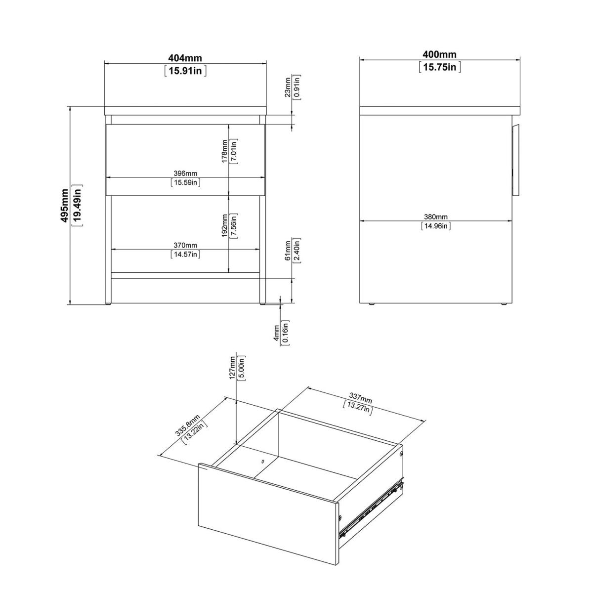 The Naia 1-Drawer 1-Shelf Bedside Table offers a tribute to timeless furniture design with a modern edge. This sleek and stylish Naia table can easily fit into your interior and provide the space you need for your alarm clock, a book, and all your other nighttime essentials. Easy to coordinate with a variety of home decor styles, this table is finished with a high-quality laminated board that's resistant to damage and scratches, moisture, and high temperature for your convenience.