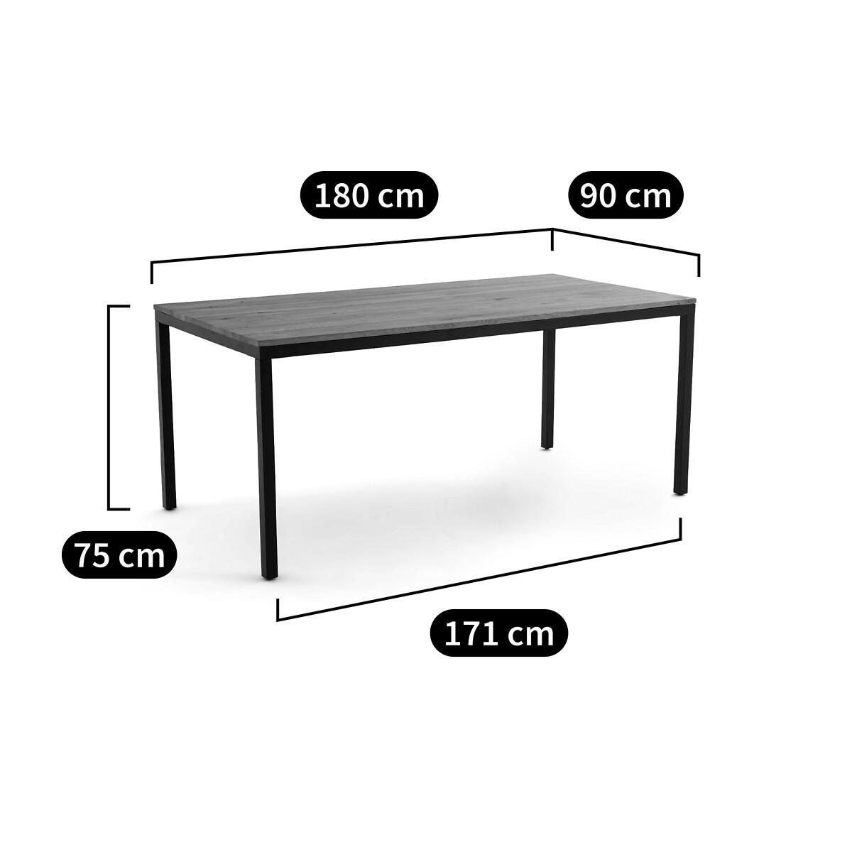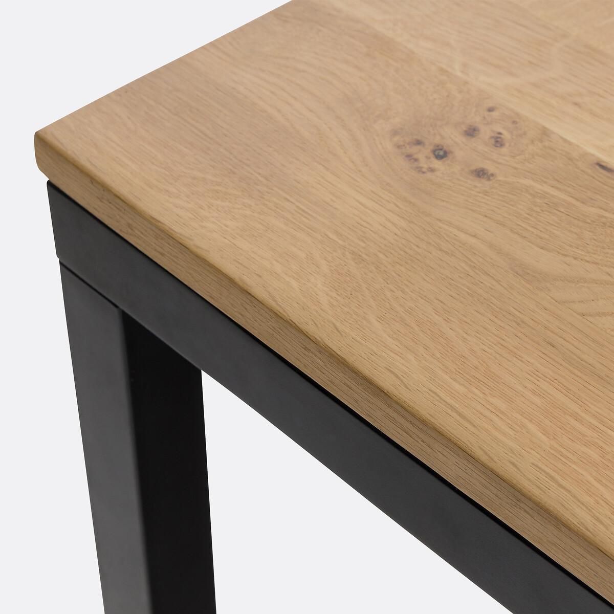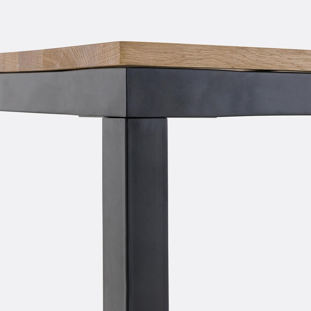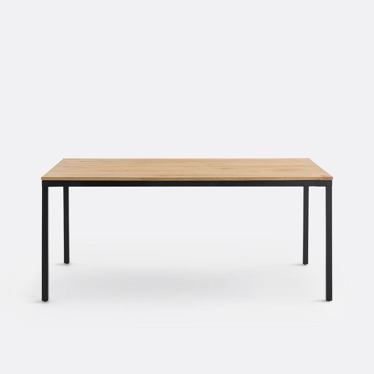 A slender line and a superb solid oak top resting on a black metal base... The Nairobi dining table displays a charming contemporary spirit. Its generous proportions will seduce you. Designed by La Redoute Interiors. Product Details • Top in solid oak, FSC® certified (thickness 19mm) colourless nitrocellulose varnish finish • Belt and legs in steel tube (thickness 40mm) painted black, epoxy finish • Seats 6-8 peopleDimensions. Overall • Width: 180cm • Height: 75cm • Depth: 90cm. Usable space • Length between legs: 171cm • Width between legs: 81cmDelivery:. Assembly required. Available for home delivery. Note! Please check that all access points are large enough to accommodate your delivery (doors, stairs, lifts). • WOOD FROM SUSTAINABLY MANAGED FORESTS. FSC® certified wood comes from forests that are environmentally, socially and economically well managed. Dimensions and weight of parcel2 parcels • L185.5 x H8.5 x D95.5cm, 36.5kg • L85 x H16.5 x D13.5cm, 6kg