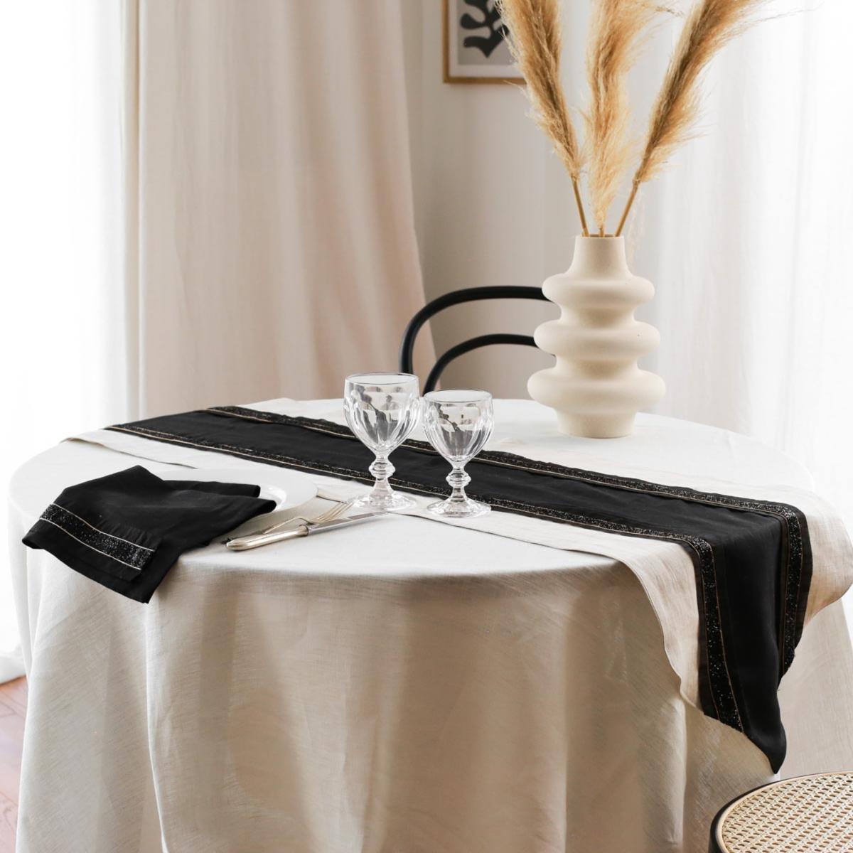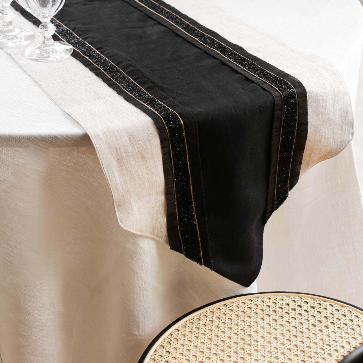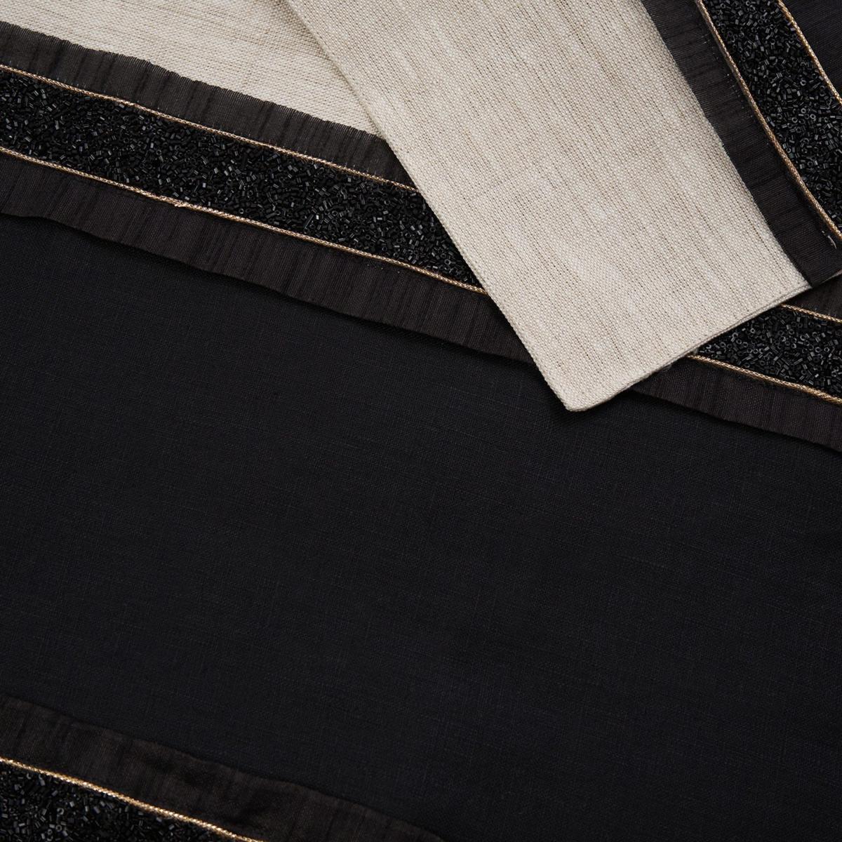 Nalani - Stone & Black Colored Linen Runner | One Size | Km Home Collection