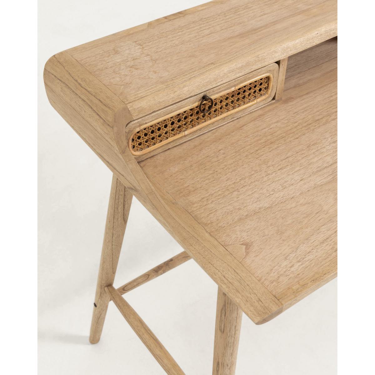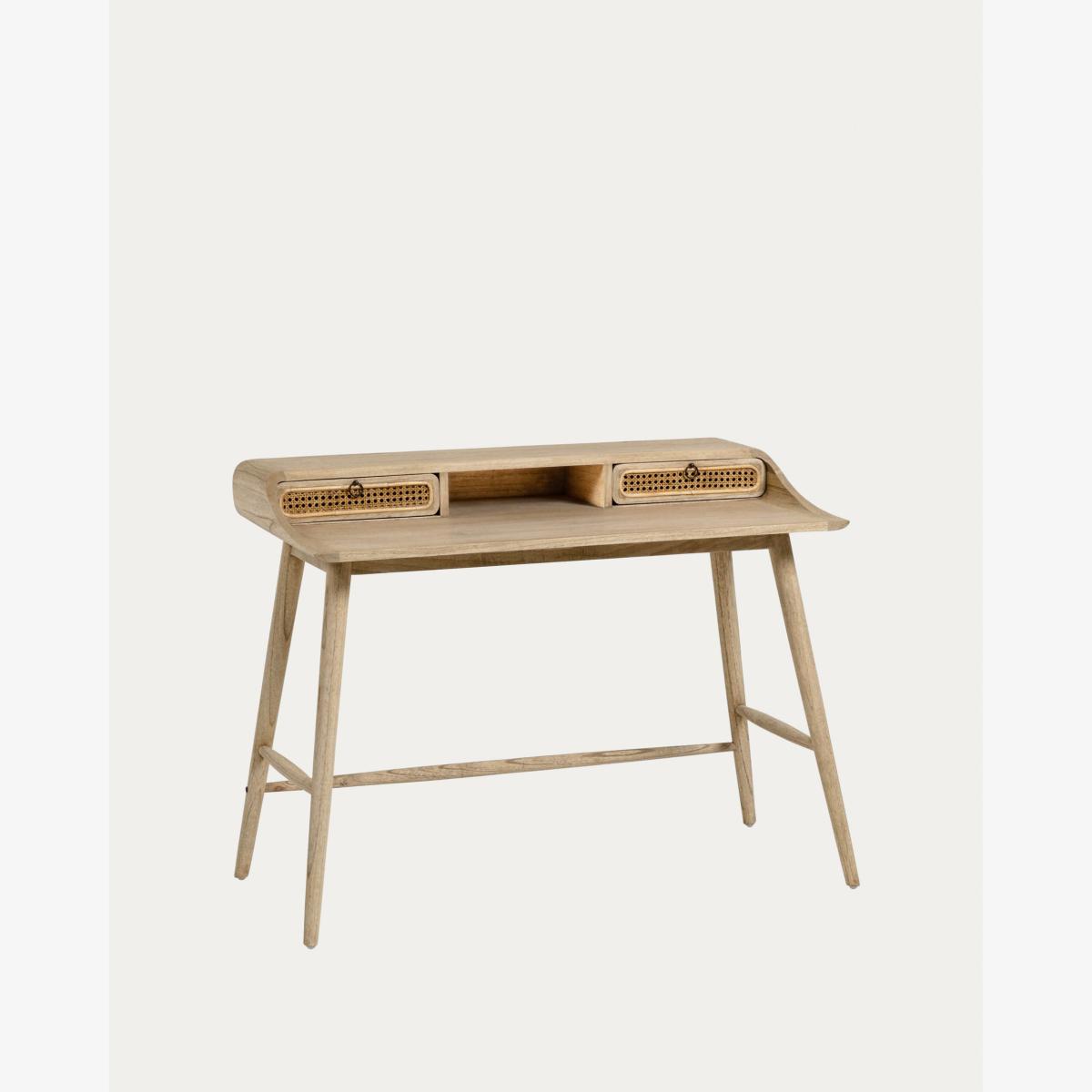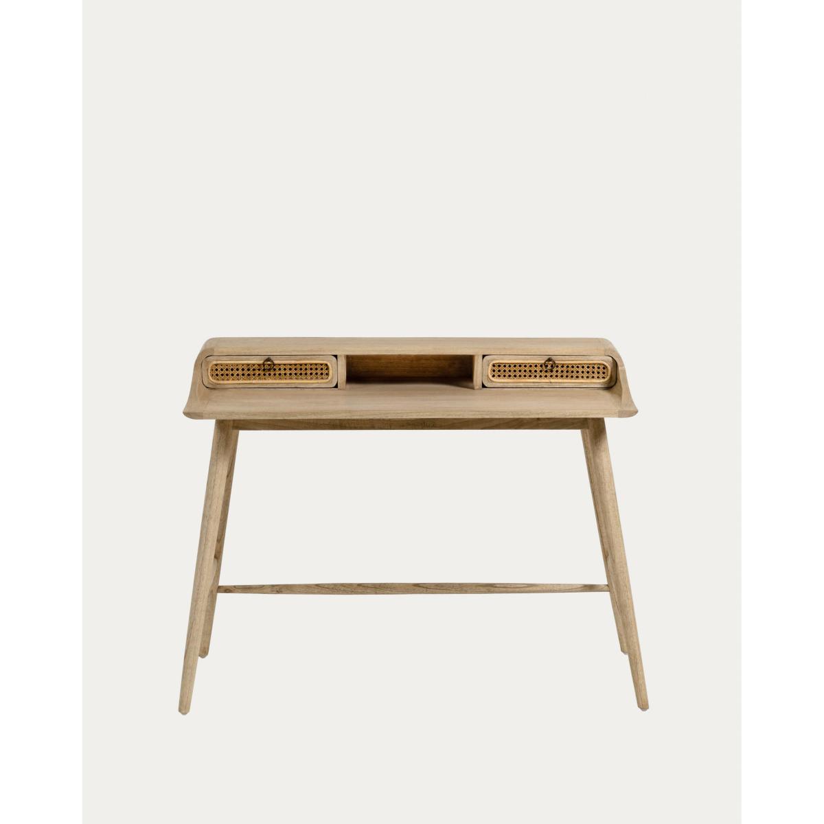 I’m a big fan of the Nalu for its light oak tone and woven cane detailing - it brings a warm, relaxed feel without overwhelming a room. Its slim, tapered legs and compact 110 × 60 cm footprint suit both small home offices and bedroom corners, especially in Scandi-inspired or boho schemes. To style it, keep the surface tidy: a slender brass desk lamp, a low-profile laptop stand and a single pot plant balance function and form. Use the two front cubbies for notebooks or mail, then add a woven tray underneath for papers to maintain a clean look.
