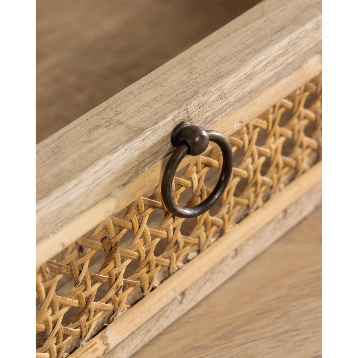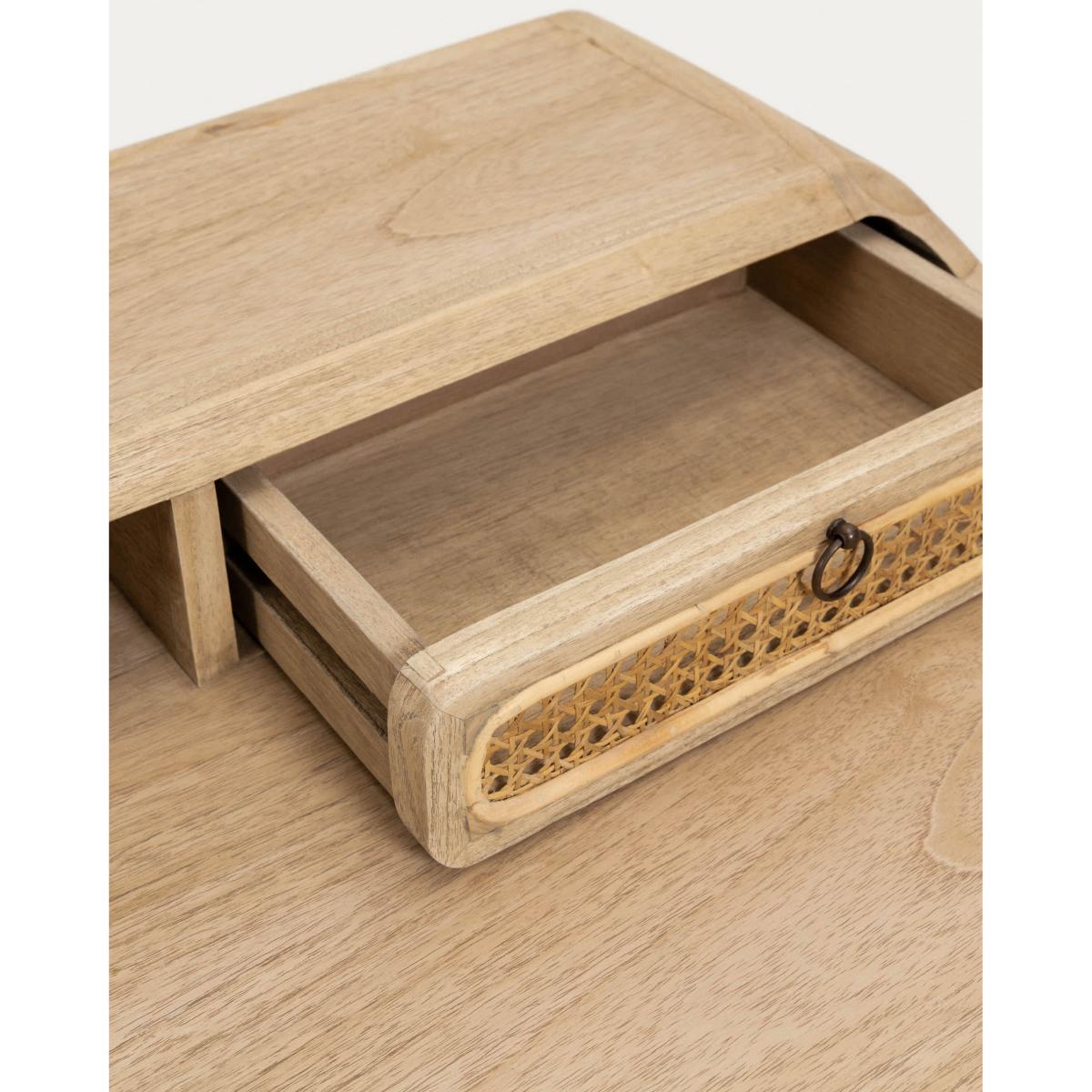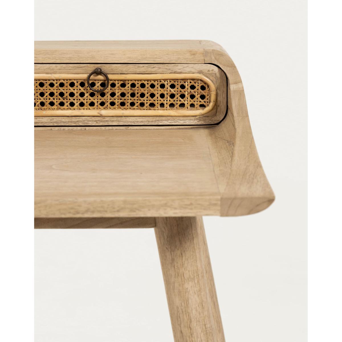 I’m a big fan of the Nalu for its light oak tone and woven cane detailing - it brings a warm, relaxed feel without overwhelming a room. Its slim, tapered legs and compact 110 × 60 cm footprint suit both small home offices and bedroom corners, especially in Scandi-inspired or boho schemes. To style it, keep the surface tidy: a slender brass desk lamp, a low-profile laptop stand and a single pot plant balance function and form. Use the two front cubbies for notebooks or mail, then add a woven tray underneath for papers to maintain a clean look.